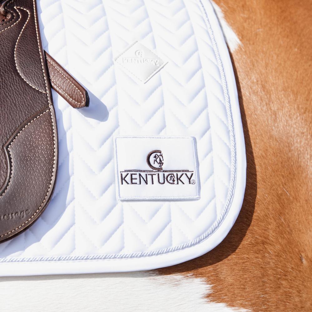 Diese Schabracke mit Fischgrät-Muster besteht aus einem atmungsaktiven Material (43% Nylon, 43% Polyester und 14% Elasthan) und eignet sich daher perfekt für Turniere oder das Training zu Hause.