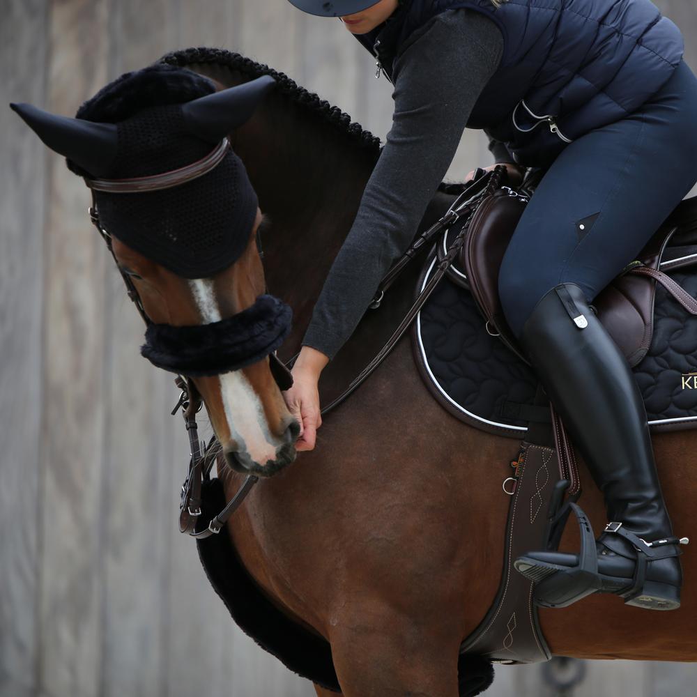 Die Nasenriemen-Abdeckung mit Schaffell (28 cm) schützt die Nase des Pferdes vor Reibung oder Scheuern, kann aber auch dazu verwendet werden, den Bereich hinter den Ohren vor Druckstellen zu schützen. Aus künstlichem Schaffell gefertigt, ist sie extrem weich und bequem und daher ideal für Pferde mit empfindlicher Haut. Daneben schützt sie auch das Leder vor Schweiß und Schmutz. Einfache Passform durch Klettverschluss und leichte Pflege, da das Schaffell speziell für die Waschmaschine bei 30° C (kein Trockner) hergestellt wird.