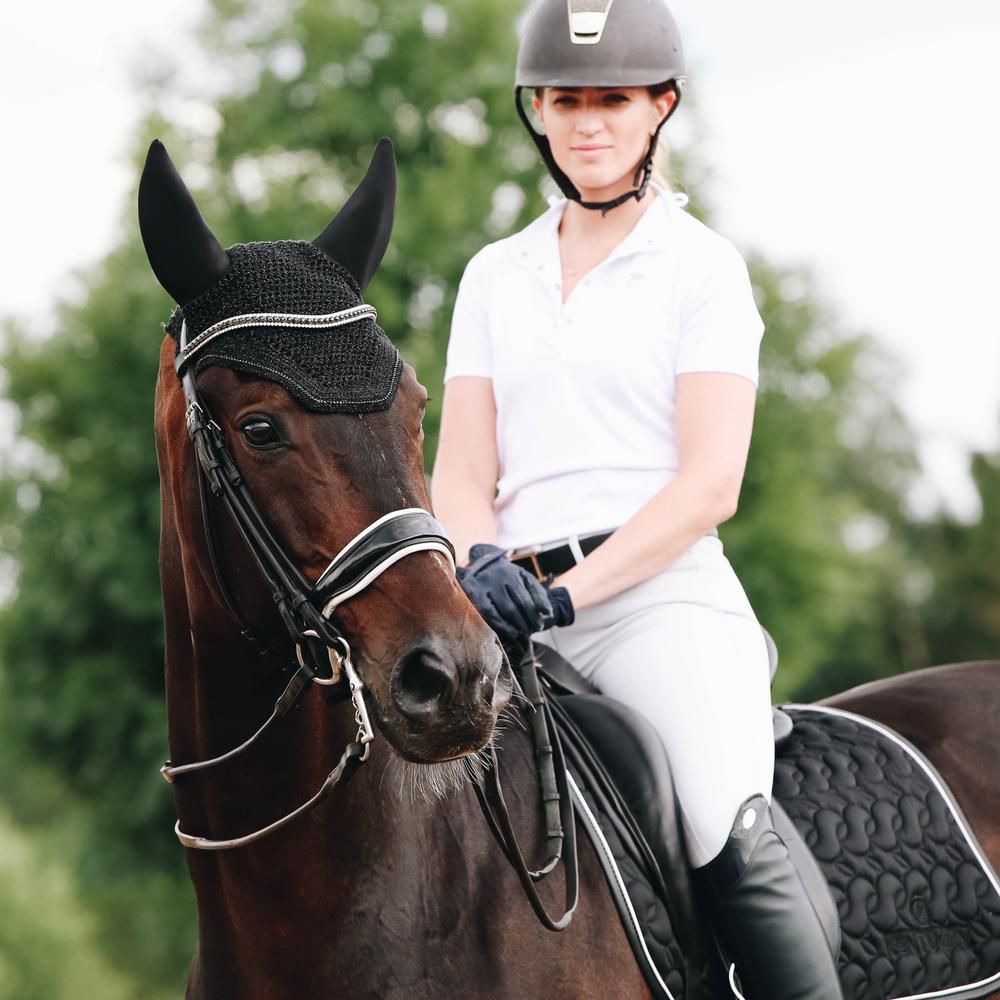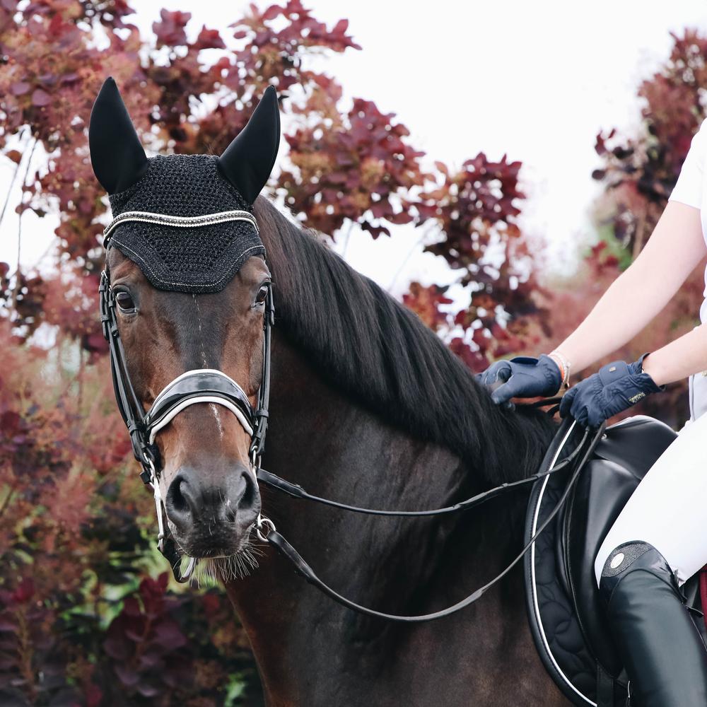 Unsere Fliegenhaube Sparkling ist eine Kombination aus modernem amerikanischem Look und dem Know How von Kentucky Horsewear. Die Fliegenheube schützt die Ohren des Pferdes beim Reiten vor Fliegen. Die Fliegenhaube hat kein sichtbares Logo, daher können Reiter oder Sponsoren sie mit ihrem eigenen Logo besticken.