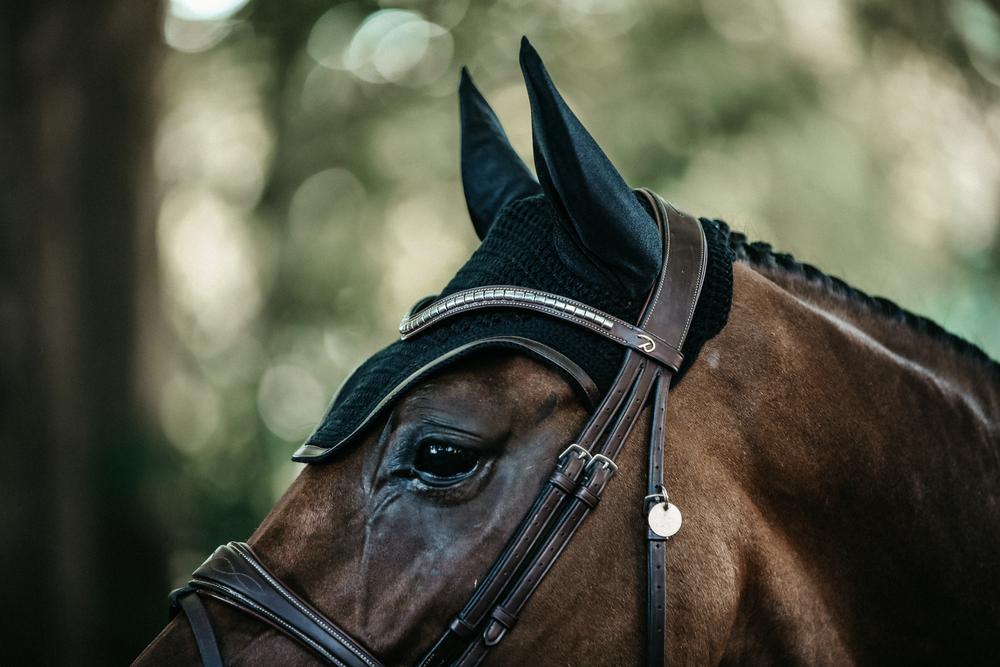 Unsere Fliegenhaube Leather ist eine Kombination aus modernem amerikanischem Look und dem Know How von Kentucky Horsewear. Die Fliegenhaube schützt die Ohren des Pferdes beim Reiten vor Fliegen. Die Fliegenmütze hat kein sichtbares Logo, daher können Reiter oder Sponsoren sie mit ihrem eigenen Logo besticken.