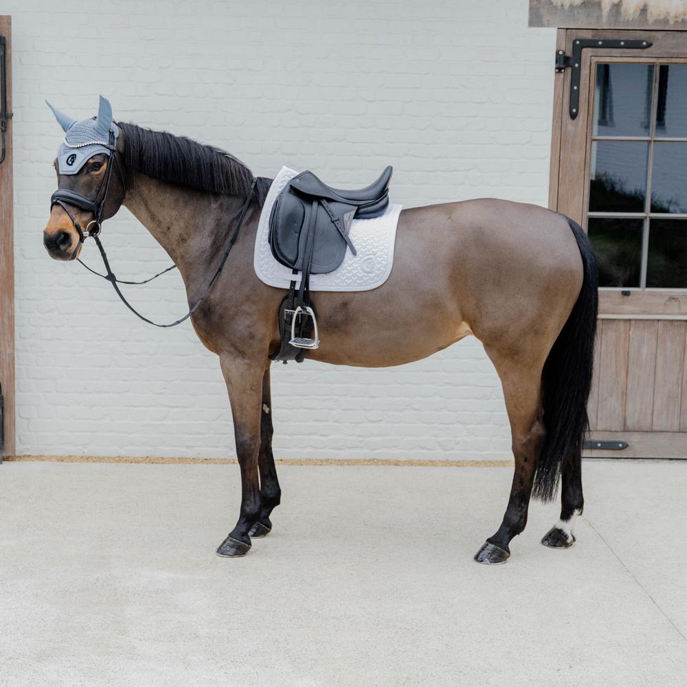 Das beidseitige 3D-Logo, am unteren Ende der Schabracke, bietet dir die Möglichkeit, ein eigenes Logo aufzusticken. Diese Schabracke ist in mehreren Farben erhältlich, die du mit unseren Fliegenhauben kombinieren kannst, um einen stilvollen Kentucky-Look zu erzielen.