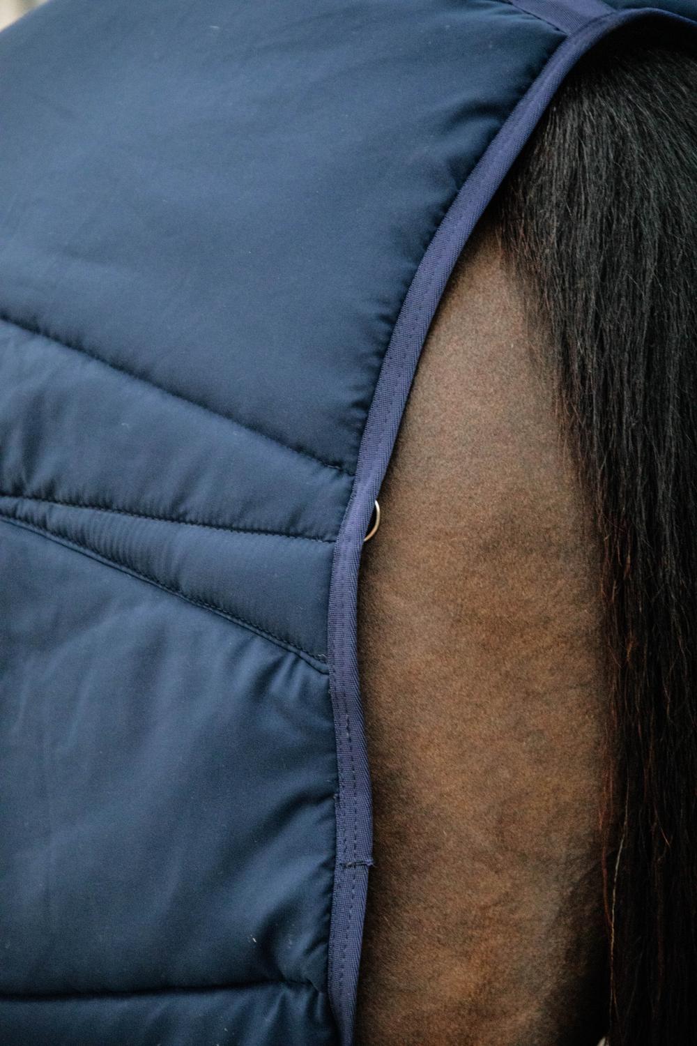 Die Unterdecke kann mit unseren Stall- und Weidedecken kombiniert werden. Die Mikrofaser hält die Decke an Ort und Stelle, auch dem Wälzen oder wenn sie mit anderen Decken kombiniert wird. Die Form wurde von Fachleuten geprüft und für gut befunden.