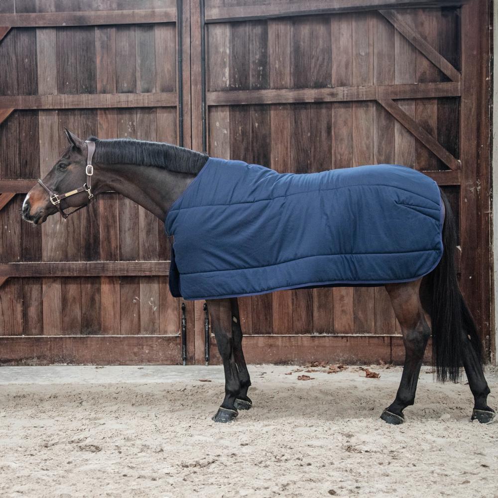Der Stoff, der für die Unterdecke Classic verwendet wird, ist eine Polyester-Mikrofaser mit einem weichen Baumwoll-Touch. Die Mikrofaser fühlt sich wie ein Pfirsich an und ist somit sehr weich, bleibt aber unter anderen Decken an Ort und Stelle, ohne zu scheuern. Die Füllung aus Fasern bietet gute Isolation, da sie Körperwärme hält und dabei atmungsaktiv ist. Dies erzeugt einen Kokon aus Wärme um das Pferd, ohne zu Schwitzen zu führen.