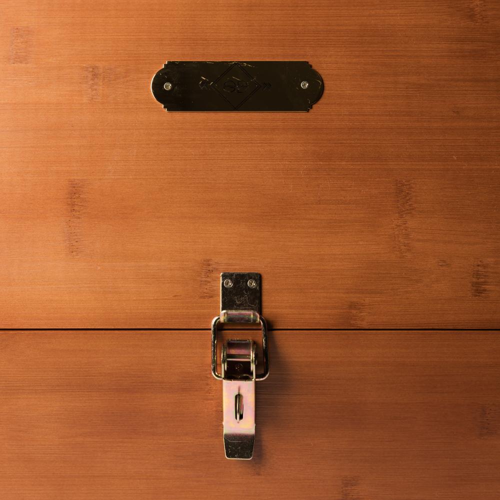 Die Show Grooming Box wird Ihr bester Freund werden, um all Ihr Pflegezubehör auf Turnieren oder zu Hause aufzubewahren. Sie ist 43,5 cm hoch, 59,5 cm breit und 32 cm tief. Die Öffnung der Box besteht aus 2 Türen, die mit einem goldenen Schnappverschluss, an dem Sie ein Schloss anbringen können, geschlossen werden können. Im Inneren befinden sich 2 kleine Schubladen (9,5 x 27,5 x 20 cm), eine größere Schublade (14 x 27,5 x 28,5 cm), ein großes Fach (28,5 x 28 x 29 cm) und ein kleineres Fach (8 x 28 x 28 cm). Alle Schubladen und der Boden des kleinen Fachs können entfernt werden. Dies ist ideal, wenn Sie mehr Platz benötigen, ihr Zubehör greifen oder die Box reinigen möchten. Sie besteht aus Bambus und ist dadurch besonders widerstandsfähig und leicht zu reinigen. Sie wird mit 3 goldenen Griffen geliefert, so dass Sie sie einfach tragen können. Kombinieren Sie mit dieser schicken Box Stil und Organisation für Ihr gesamtes Zubehör!