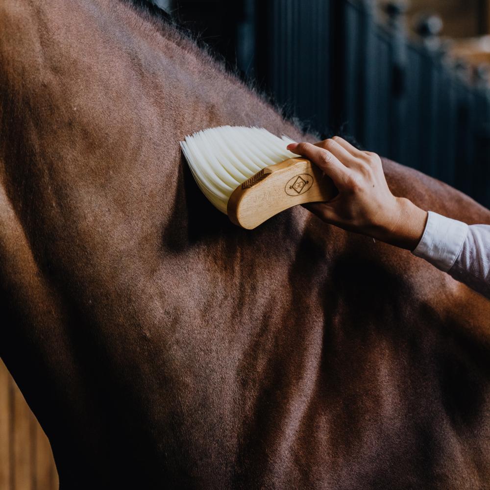 Der Middle Brush Long kommt ganz am Ende in Ihrer Putzroutine. Sie kann für ein schnelles Überputzen Ihres Pferdes benutzt werden, bevor Sie satteln und losreiten. Die Bürste kann auch benutzt werden, um Schmutz und Staub von Decken zu entfernen.
