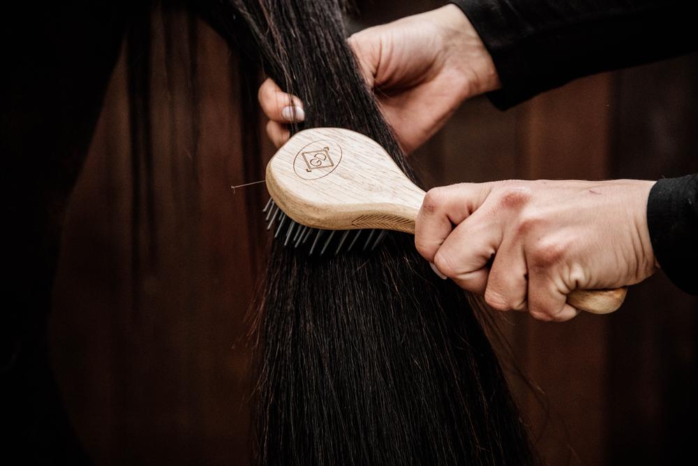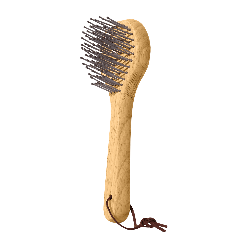 Der Griff der Mähnenbürste besteht aus antibakteriellem, leicht zu reinigendem Gummiholz. Die Stifte sind aus Polypropylen, das flexibel genug ist, um das Haar zwar nicht zu beschädigen, aber stark genug, um alle Knoten aufzulösen.