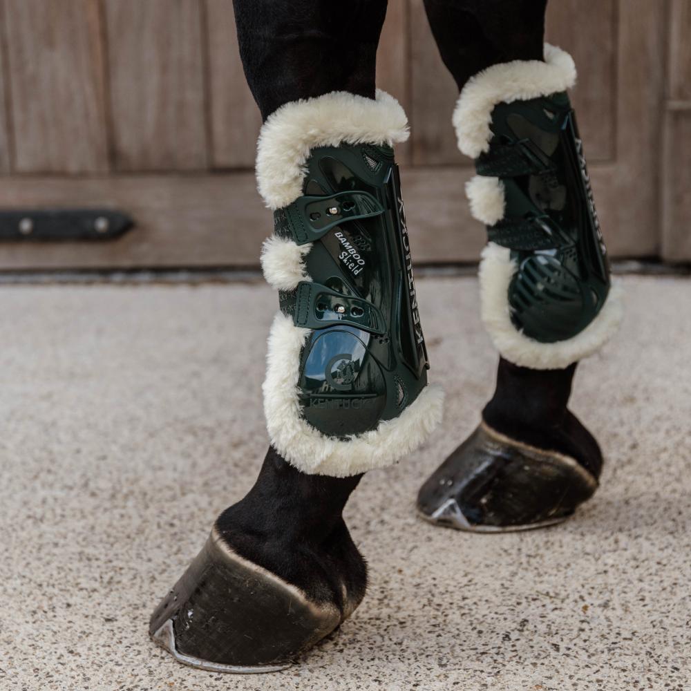 Die veganen Lammfell-Gamaschen Bamboo Elastic werden aus unserem hoch atmungsaktiven veganen Lammfell hergestellt, das seit vielen Jahren für unser berühmtes Versandhalfter, die Turnierdecke und unsere Sattelgurte verwendet wird. Die robuste Außenhülle besteht aus leichter und dennoch starker TPU-Schale, mit einem zusätzlichen Bambus-Einsatz im Sehnenbereich für optimalen Schutz vor jeglichen Stößen und dem Eindringen spitzer Gegenstände und ist zudem antibakteriell.
