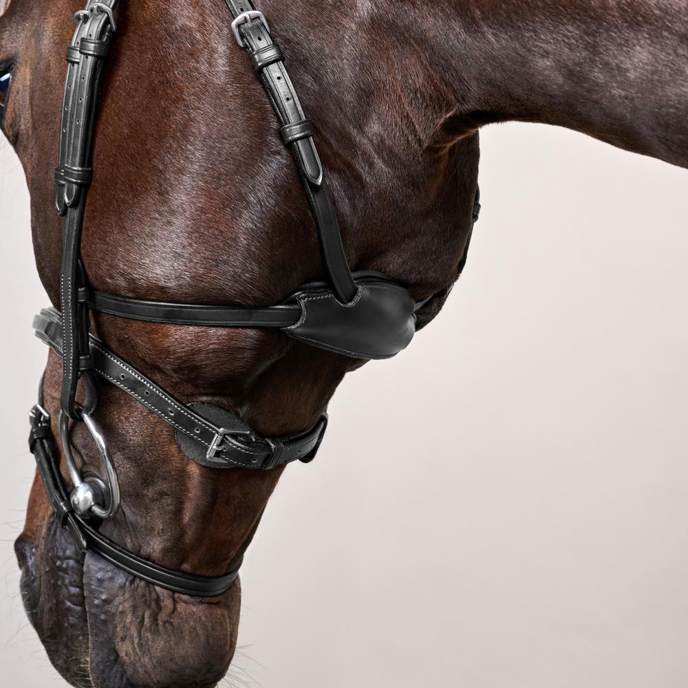 - Der Kehlriemen muss fest an den Wangen anliegen, um die Trense sicher in Position zu halten.