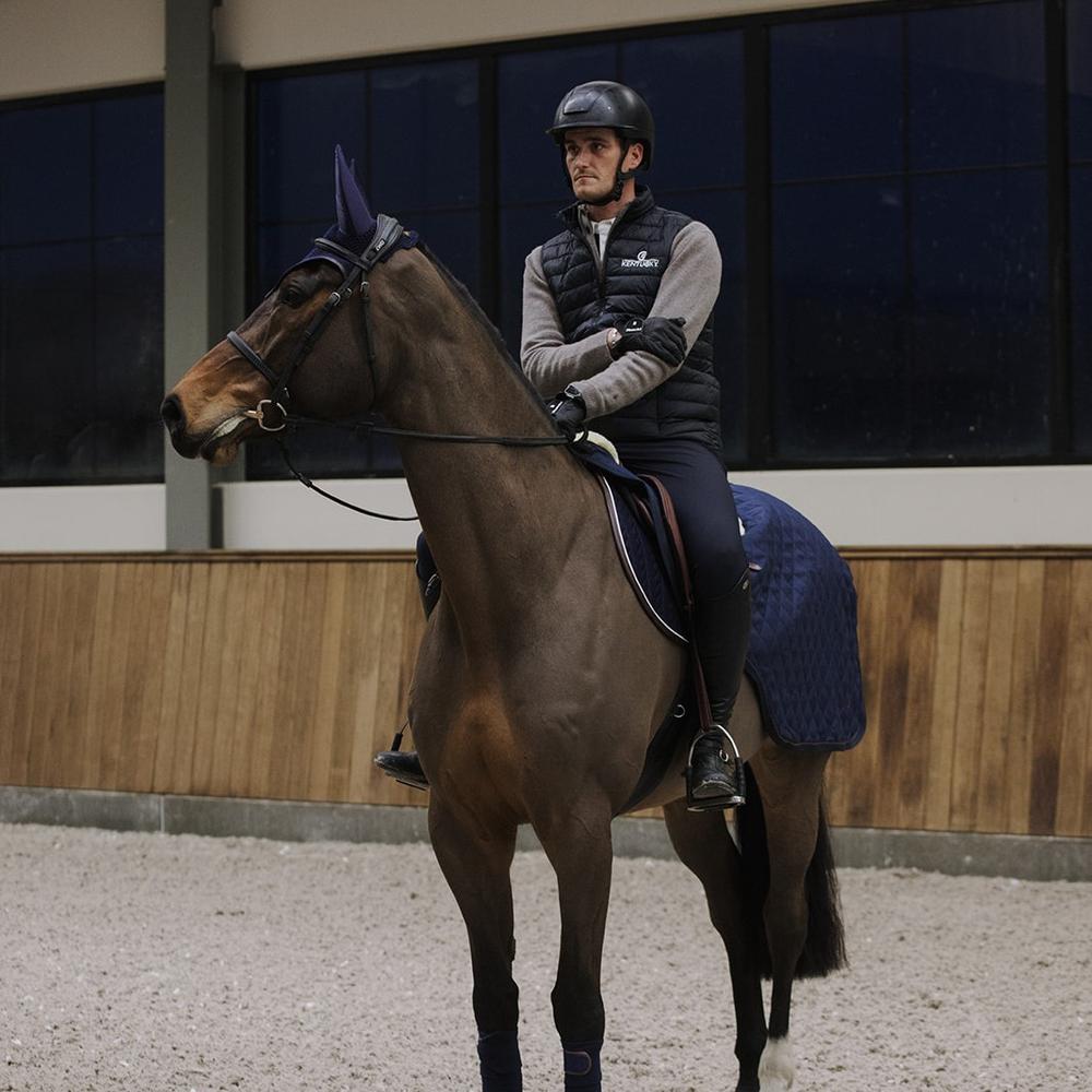 Dieser Look ist besonders ideal für geschorene Pferde sowie für kalte Tage und die Übergangszeit, wenn die Temperaturen schnell wechseln. Die Reitdecke mit 160 g hält Rücken und Muskulatur während des Aufwärmens, in Pausen und beim Abreiten angenehm warm – das unterstützt den Komfort und kann Verspannungen vorbeugen.