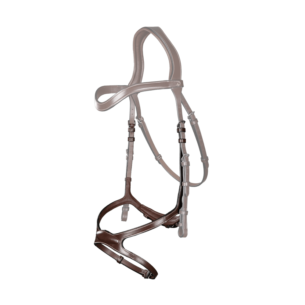 Extra-supple Grakle noseband to disengage the bones of the facial crests and avoid pressure on the infra-orbital foramina Compatible with the 1 strap headpiece of the US jumping Collection, this headpiece is equipped with a single strap where the noseband cheekpiece and the bit cheekpiece are attached