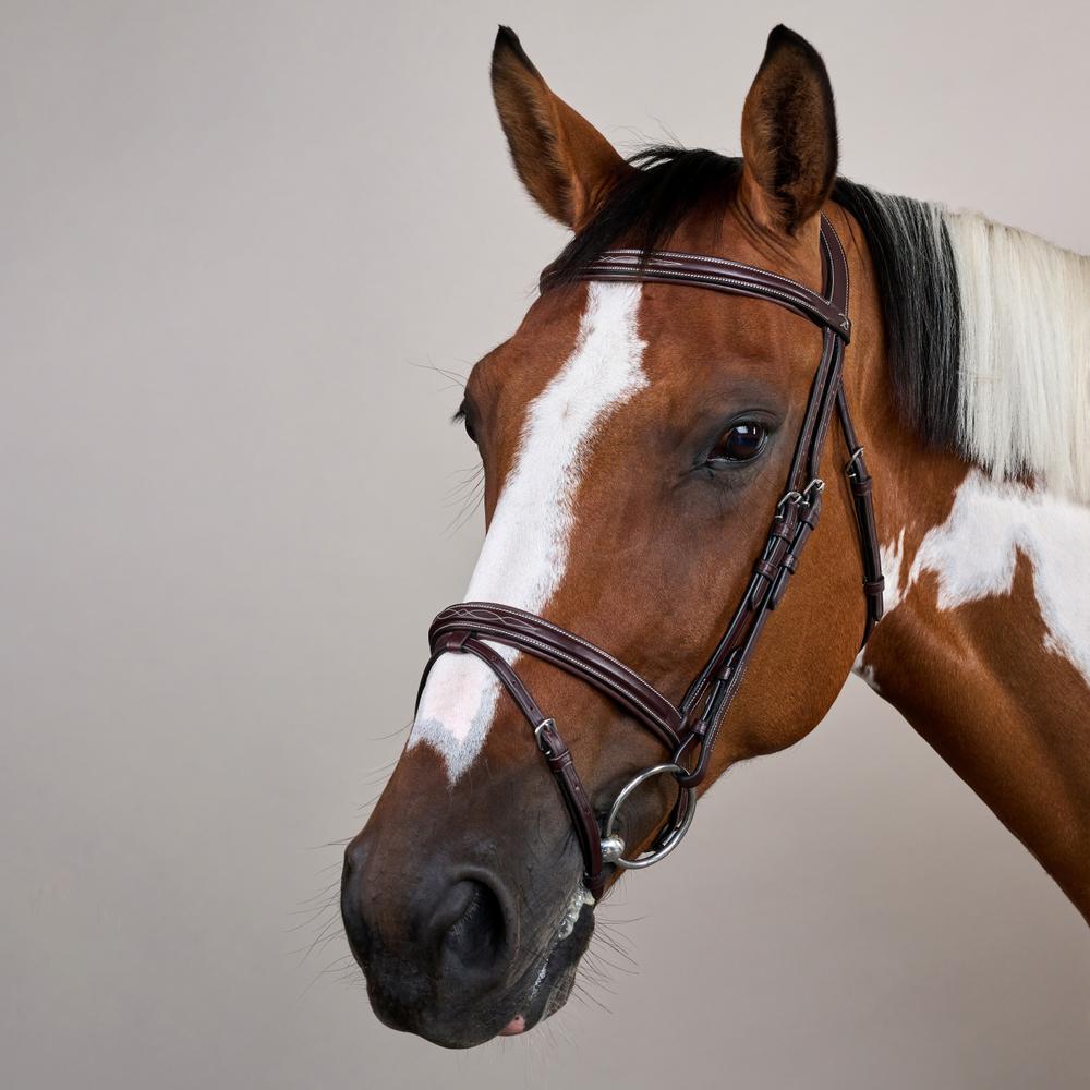 Dieses Trensenzaum gehört zur US-Kollektion, was bedeutet, dass die Nähte in Creme gehalten sind. Die Schnallen bestehen aus Edelstahl. Erhältlich in braun und schwarz.