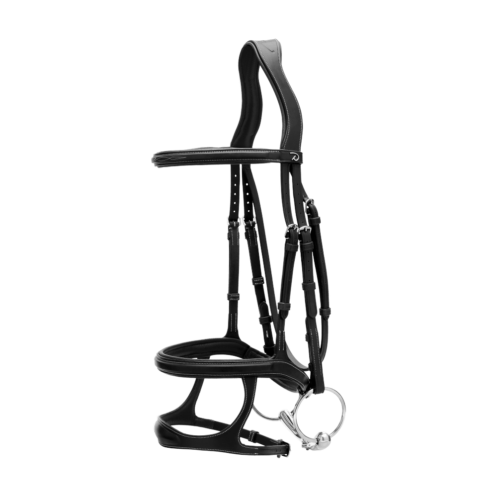 Das doppelte Nasenriemendesign ist das herausragende Merkmal dieses Zaumzeugs, da es überlegene Kontrolle bietet, indem es verhindert, dass das Pferd das Maul öffnet und dem Gebiss ausweicht. Dieses Design fördert eine bessere Kommunikation zwischen Pferd und Reiter und ist besonders vorteilhaft für Pferde, die zusätzliche Führung und Kontrolle benötigen. Der doppelte Nasenriemen trägt auch zur gleichmäßigeren Druckverteilung bei, was den Komfort erhöht und Druckstellen verhindert.