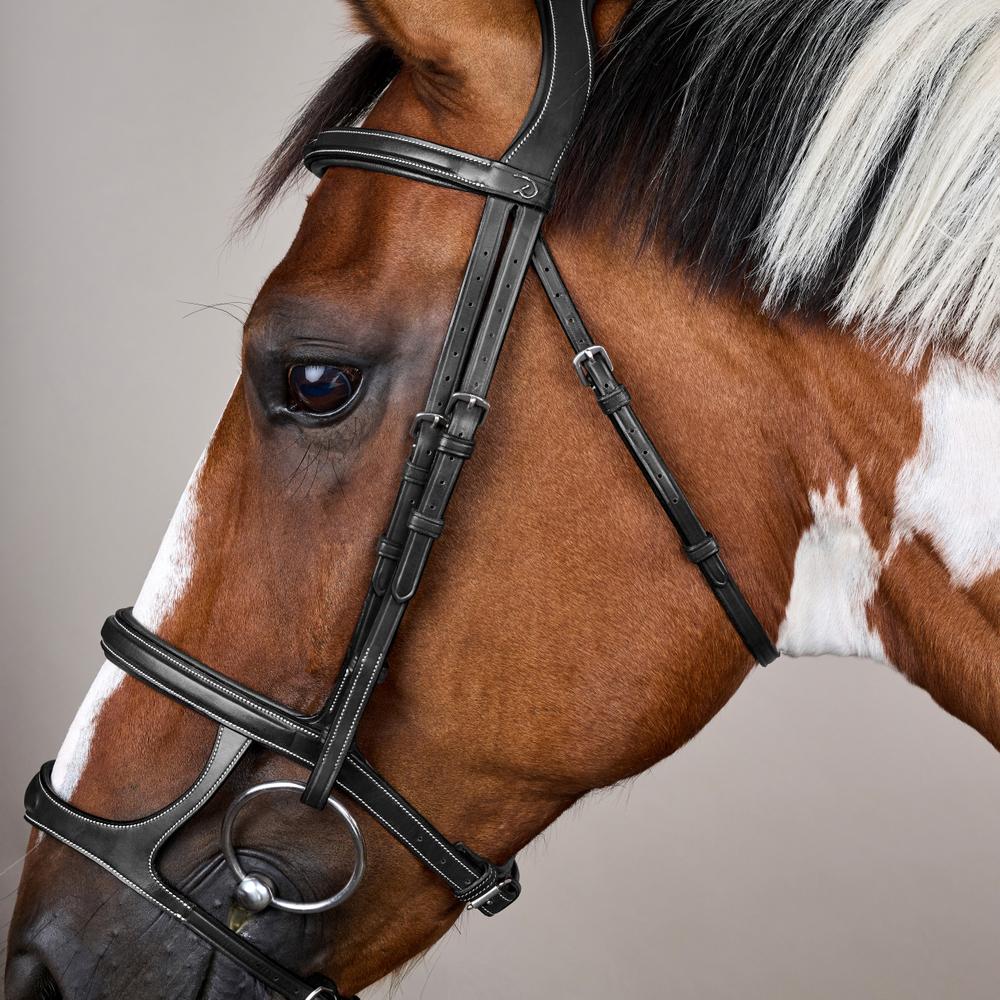 Das ergonomische Kopfstück ist für optimalen Komfort konzipiert und verfügt über Polsterungen, die den Druck gleichmäßig über den Genick des Pferdes verteilen. Dieses durchdachte Design hilft, Unbehagen zu minimieren und ermöglicht es Ihrem Pferd, sich auf seine beste Leistung zu konzentrieren. Das gepolsterte Kopfstück ist besonders bei längeren Trainingseinheiten oder Wettkämpfen von Vorteil, da es sicherstellt, dass Ihr Pferd während der gesamten Zeit entspannt und komfortabel bleibt.