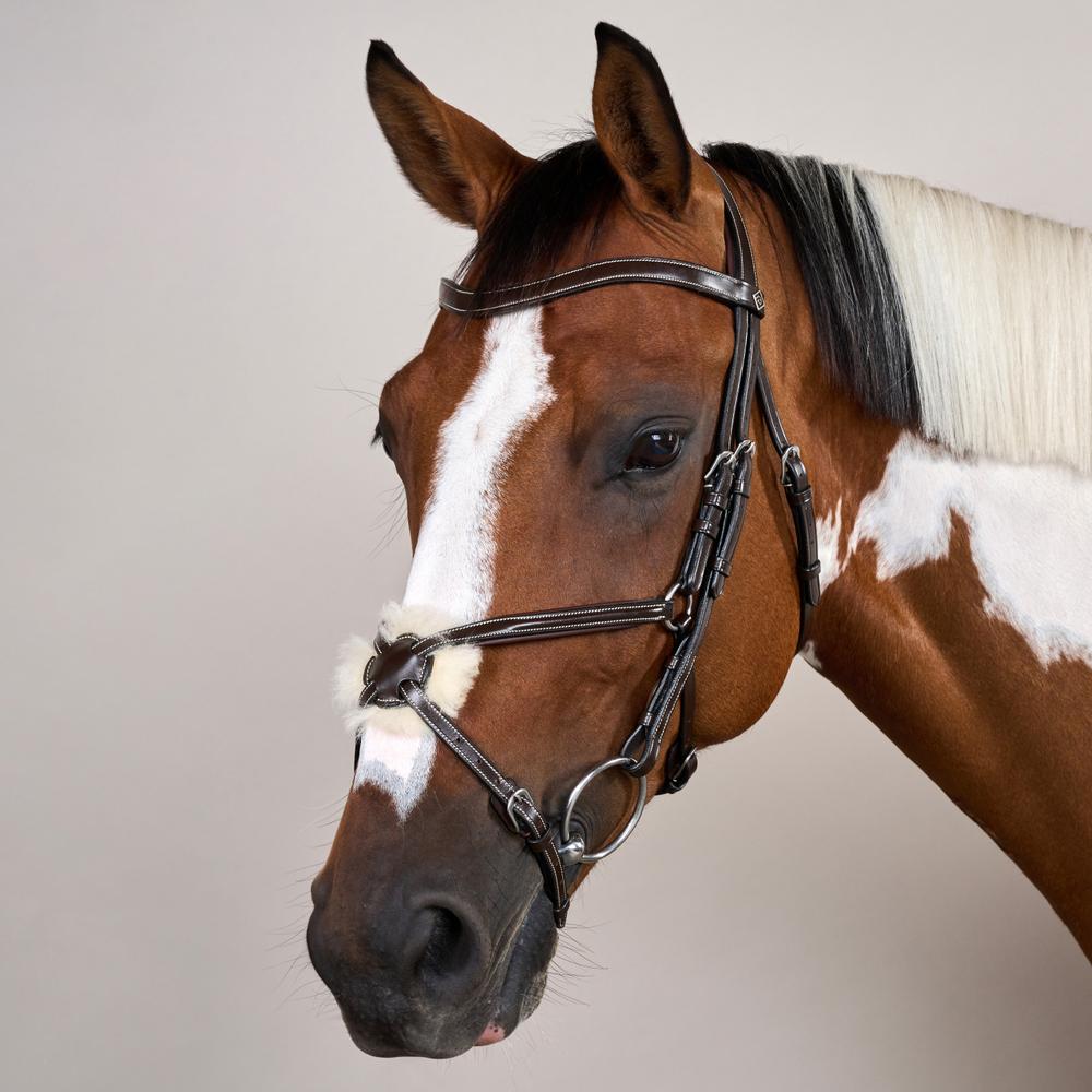 Die verstellbaren Backenstücke ermöglichen eine individuelle Passform, die sich an verschiedene Kopfgrößen und -formen anpasst. Dies macht das Reithalfter mit Kombiniertem Nasenriemen zu einer vielseitigen Option für verschiedene Pferde, die eine bequeme und sichere Passform für jedes Pferd gewährleistet.