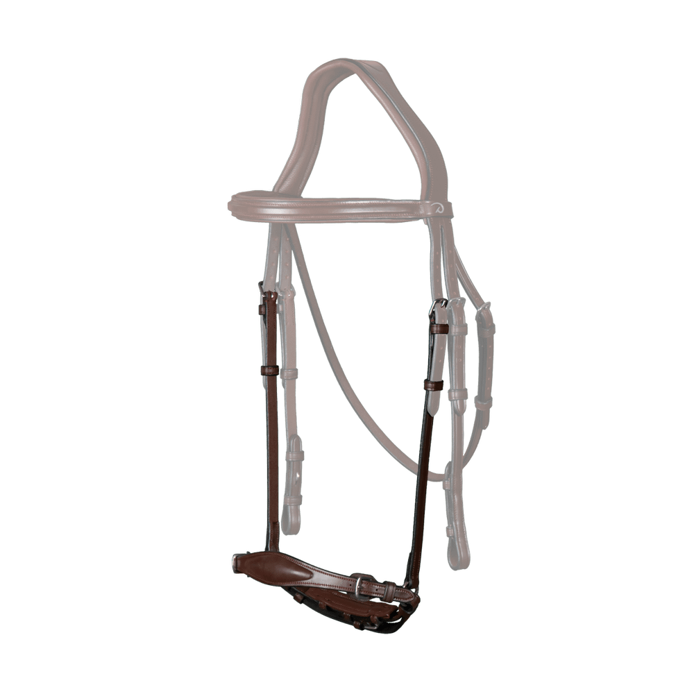 Drop noseband adjustable over the nose Narrow pull-back closure mounted on a soft padded protective leather backing Compatible with headpieces of the New English Collection