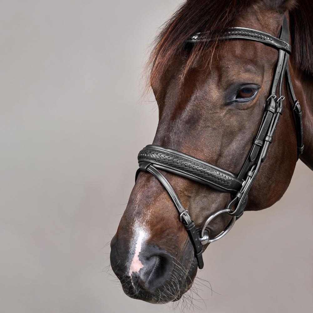 Geflochten, elegant und mit ultimativem Komfort präsentiert sich die geflochtene Trense mit schwedischen Reithalfter.