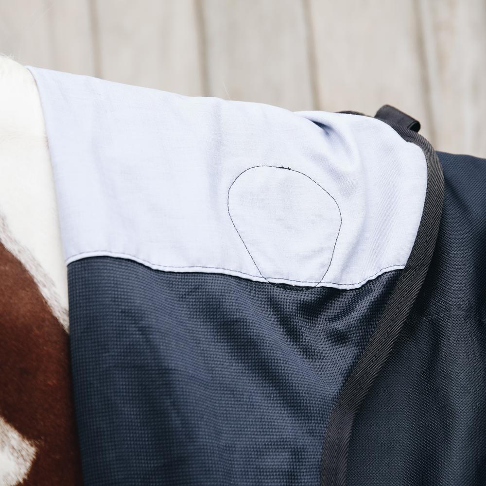Nach der Entwicklung unserer hoch innovativen magnetischen Decke aus Recuptex haben wir nun das passende Stück für den Hals entwickelt, das perfekt zu dieser Decke passt. Das Halsstück verwendet die gleiche Recuptex-Gewebetechnologie, die sich als die modernste verfügbare Technik erwiesen hat. Basierend auf der Bekaert BEKINOX®-Technologie enthält es feinstes Inox-Garn (eine Edelstahlfaser), das in das Gewebe eingewebt wird. So entsteht ein Faraday-Käfig, der die im Körper des Pferdes erzeugten Magnetfelder reflektiert. Die Erhaltung dieser Felder regt die Durchblutung und den Sauerstofffluss an. Gleichzeitig wird so auch der Erholungsprozess in einer natürlichen Schutzumgebung beschleunigt. Das Halsstück besteht aus einem sehr widerstandfähigen Netzgewebe, das sowohl im Sommer als auch im Winter verwendet werden kann. Es ist ideal, um die Muskeln der Pferde vor und nach dem Reiten zu entspannen und kann auch über Nacht sehr gut auf dem Pferd gelassen werden. Wir empfehlen, das Halsstück zu Beginn ca. eine Stunde zu benutzen und die Anzahl der Stunden auf dem Pferd in den nächsten Tagen allmählich zu erhöhen. So können die Pferde sich an den entstehenden Kribbeleffekt gewöhnen. Das Halsstück kann mit einer einfachen Schnalle an der Decke befestigt werden und hat auch zwei starke Klettverschlüsse. Maschinenwaschbar bei 30°, kein Trockner.