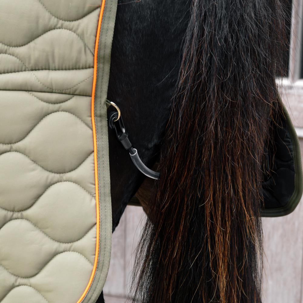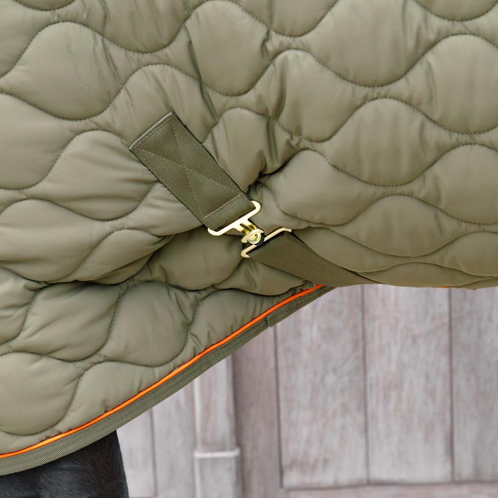 Thanks to the thoughtful shape, the rug has a better fitting on the horse. The rug closes with 2 front buckles and 2 surcingles. The whiters are protected by an artificial sheepskin.
