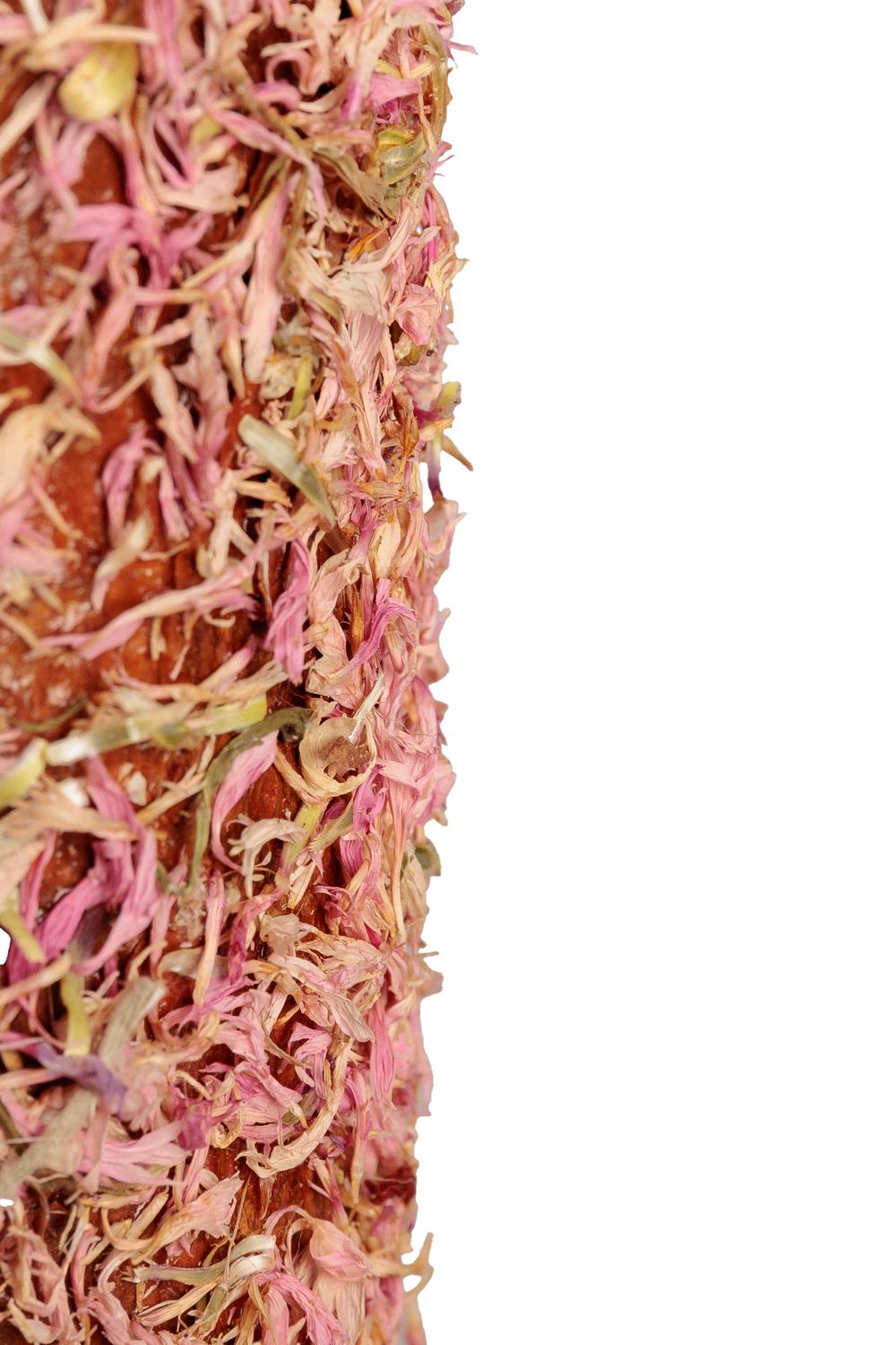 -Â Â Â Â Â Â Â Â The pink piece features pink cornflower, valued for its calming, antioxidant, anti-inflammatory, and detoxifying effects.