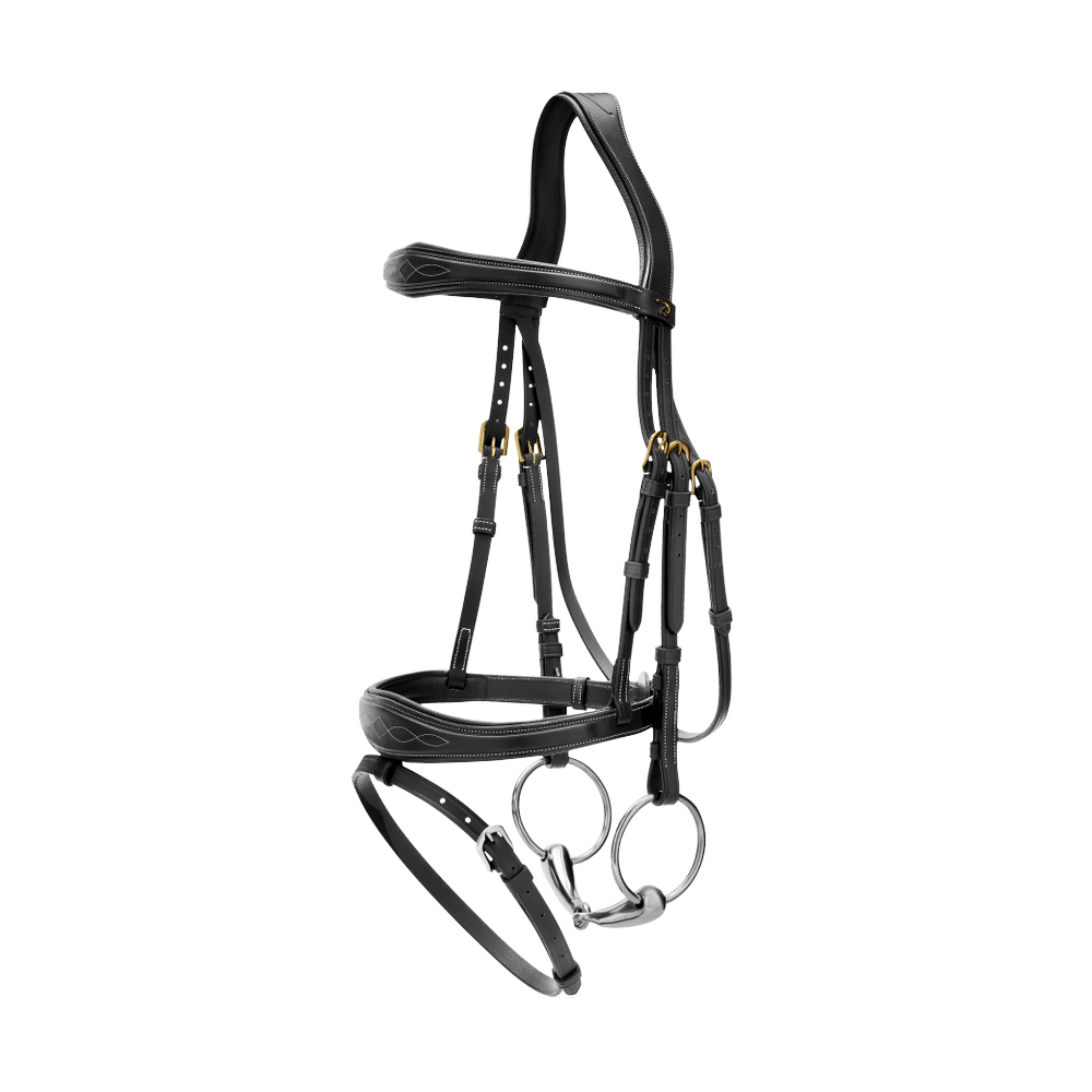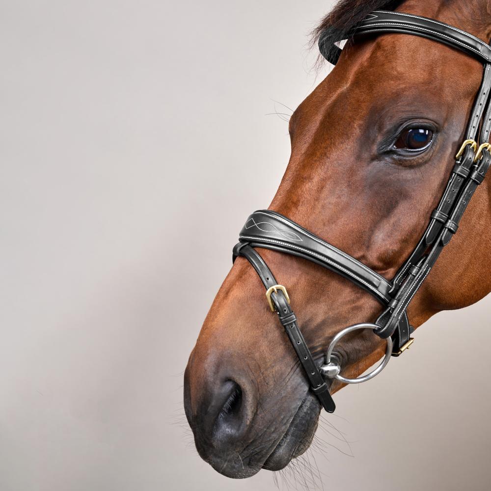 The Anatomic Flash Noseband Bridle is instantly recognizable for its timeless elegance and high-performance design. Whether seen from afar or up close, its subtly broadened noseband and browband create a distinctive, polished look that exudes class. Designed for ultimate horse comfort, the anatomical shape reduces pressure on sensitive areas, ensuring optimal fit and stability during training and competition.