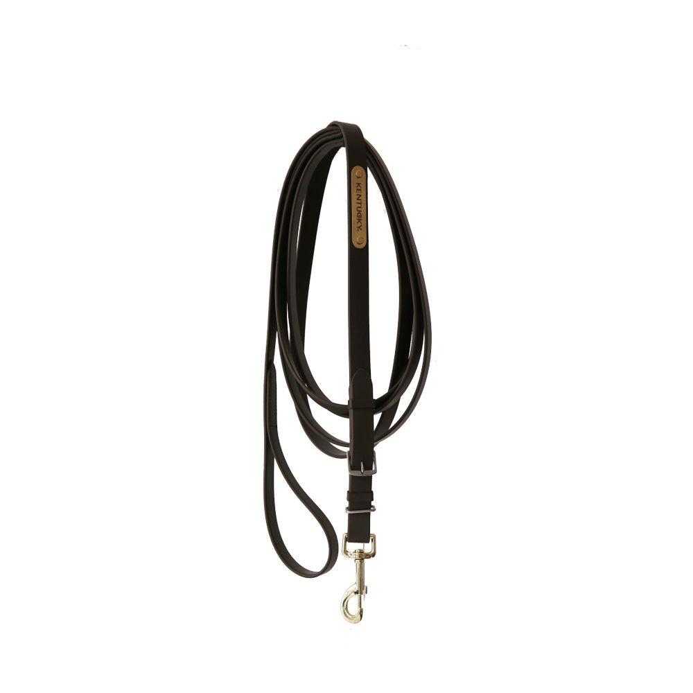 Notre longe pour étalon Stallion Lead mesure 4m de long et est fabriquée à partir de polyuréthane. Cela rend la longe très résistante mais souple - même par temps froid. Elle est agréable à manipuler. La longe ne se détendra pas, elle est antidérapante et très facile à entretenir car elle résiste à l’eau. Vous pouvez choisir de graver la plaque qui peut être retournée. Grâce à ses nombreuses qualités, cette longe est une alternative intéressante et bon marché par rapport aux longes de présentation en cuir coûteuses. Les boucles de cette longe sont dorées pour correspondre à tous nos licols et à notre chaîne de présentation Stallion Chain. La boucle d’attache peut facilement être changée pour une chaîne grâce à sa fermeture pratique. Par conséquent, cette longe est idéale en combinaison avec notre chaîne Stallion Chain de 60 cm.