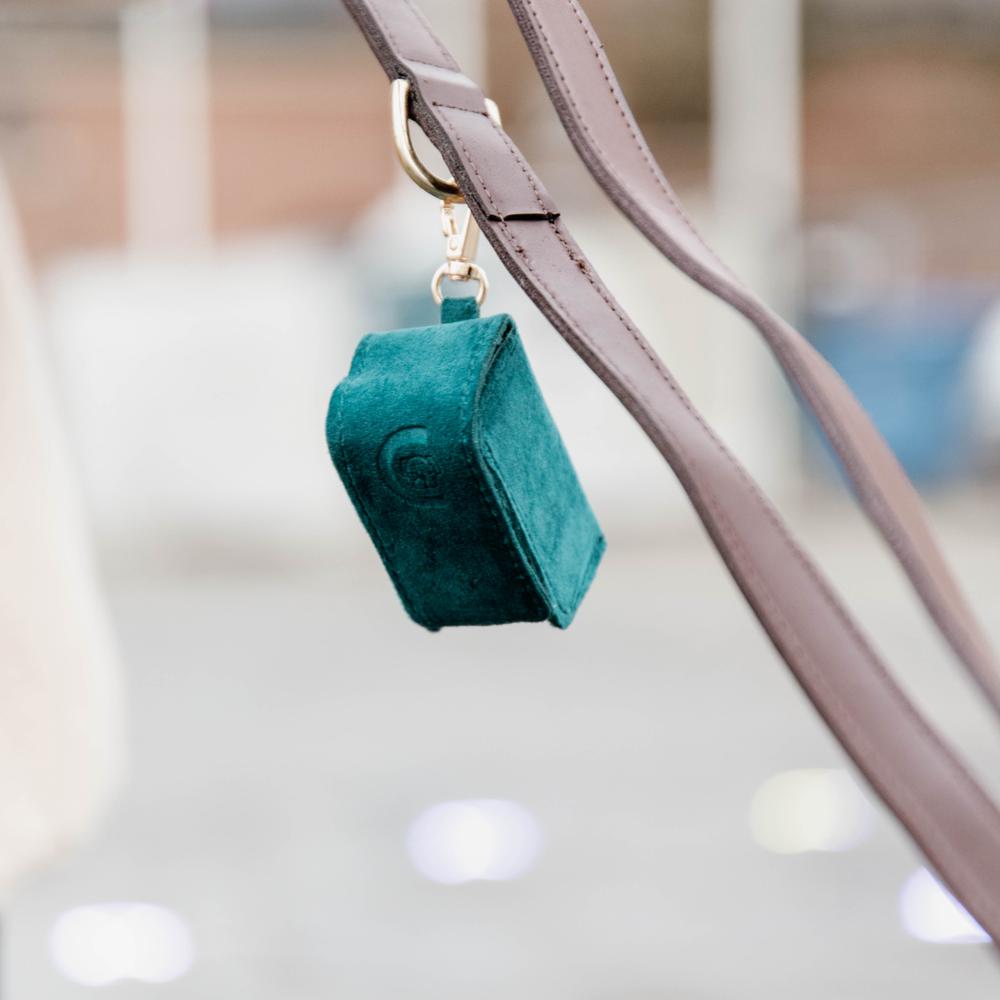 Le sac à crottes carré velvet est parfaitement assorti à nos produits de la collection Velvet. Le design simple mais mignon du sac en fait un accessoire parfait. Le sac se ferme avec un aimant puissant pour éviter que le rouleau de sacs ne tombe. Grâce à l'ouverture, on peut facilement prendre un nouveau sac à crottes à l'arrière du sac. Pour l’attacher à la laisse, nous avons prévu un crochet en plaqué or.
