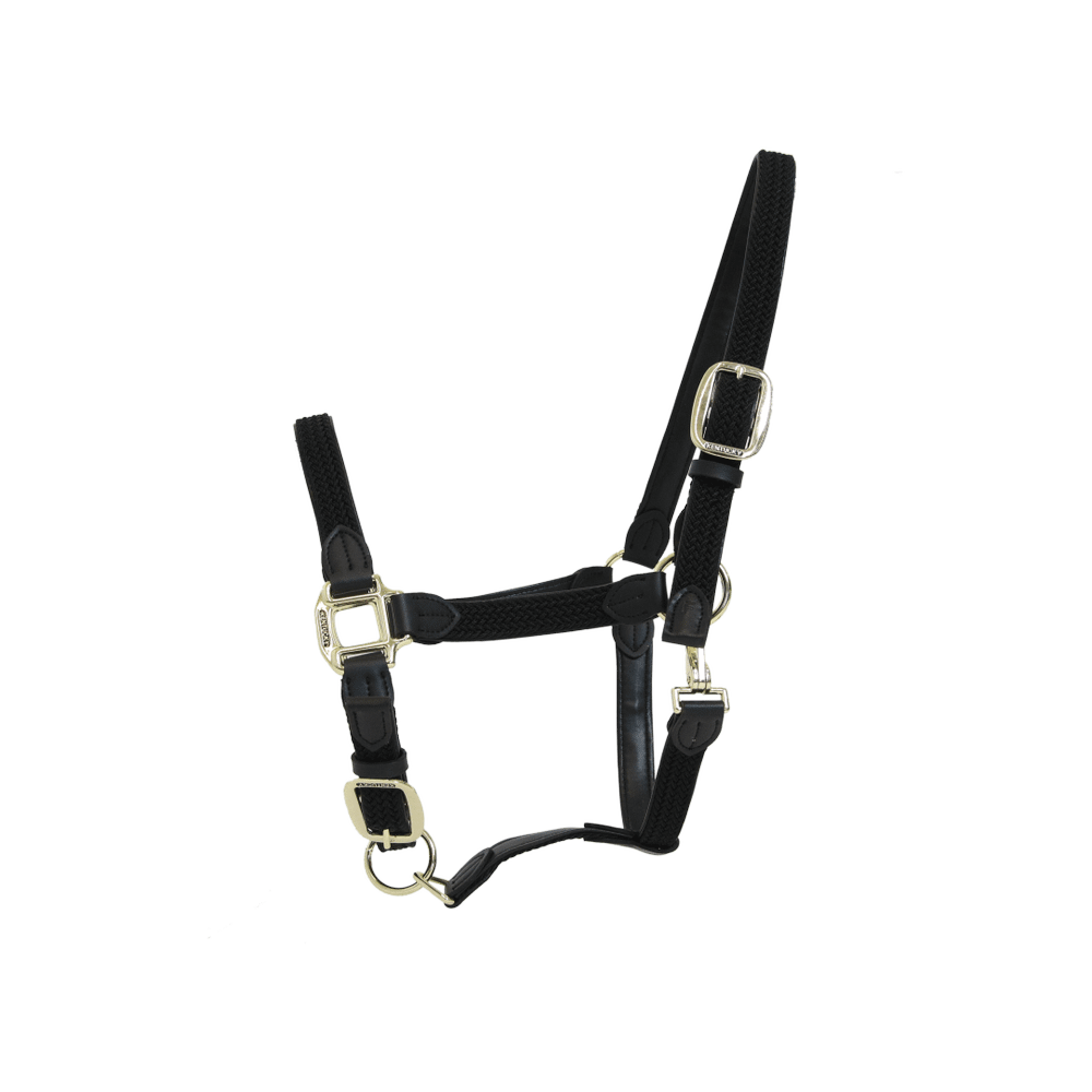 Le Plaited Nylon Halter est fait de similicuir (100% respectueux des animaux). Ce cuir est recouvert de nylon tressé. Toutes les fermetures sont de couleur or et sont donc parfaitement assorties à nos longes.