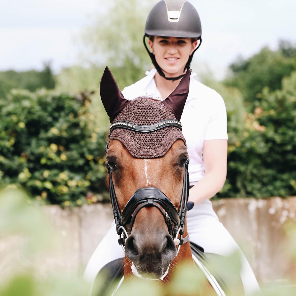 Notre Fly Veil Sparkling combine le look américain moderne et l’expertise de Kentucky Horsewear. Il protège les oreilles du cheval contre les mouches pendant le travail. Ce bonnet n’a pas de logo visible, le cavalier ou les sponsors peuvent donc broder leur propre logo.