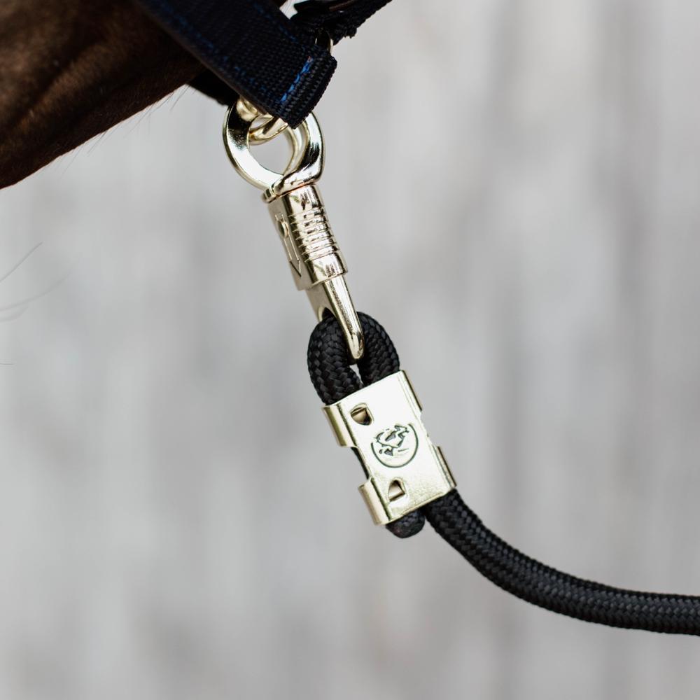 Cette corde anti-panique, souple et ronde, est fabriquée en nylon tressé serré, ce qui est parfait pour réaliser de superbes liens croisés. C'est une corde de 2 mètres de long avec un crochet de panique facile à utiliser. Le crochet de panique se détache en cas d'urgence et empêche votre cheval de rester coincé sur le crochet. Elle peut être utilisée dans les écuries ou pendant le transport et partout où votre cheval a besoin d'être attaché.