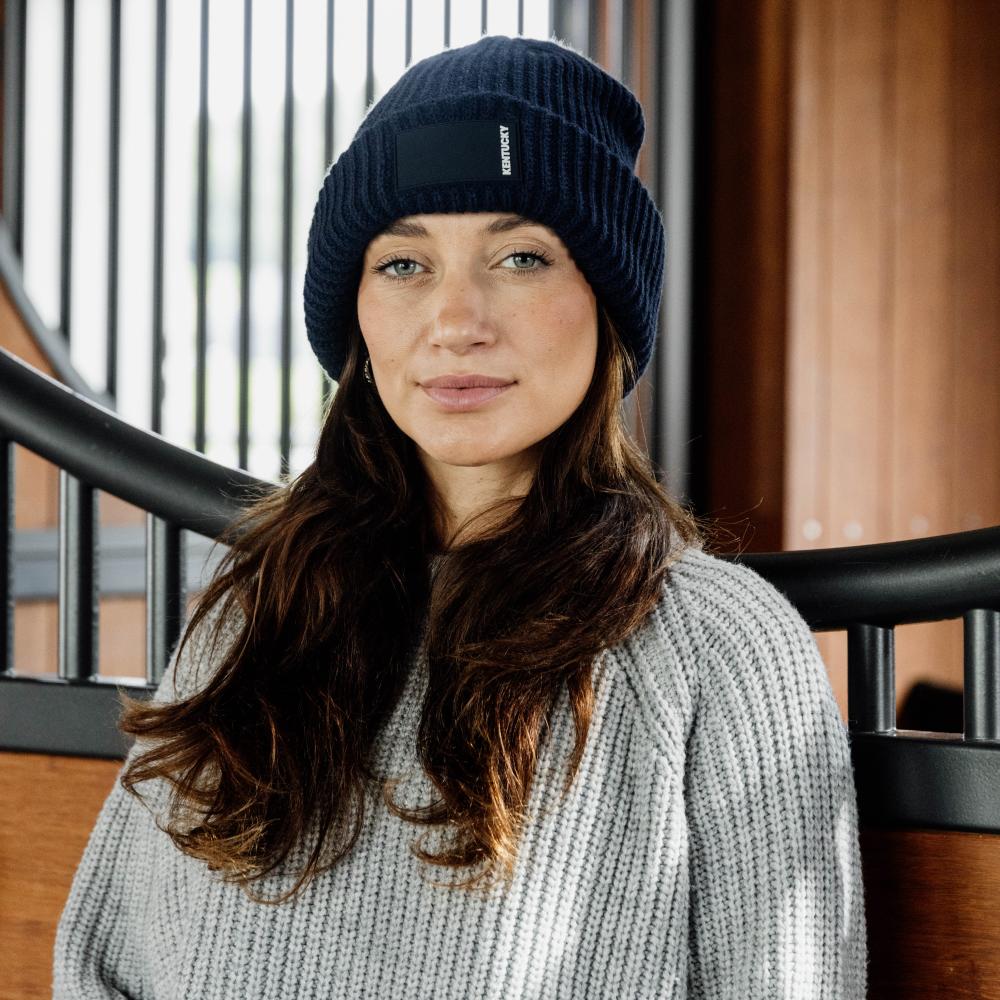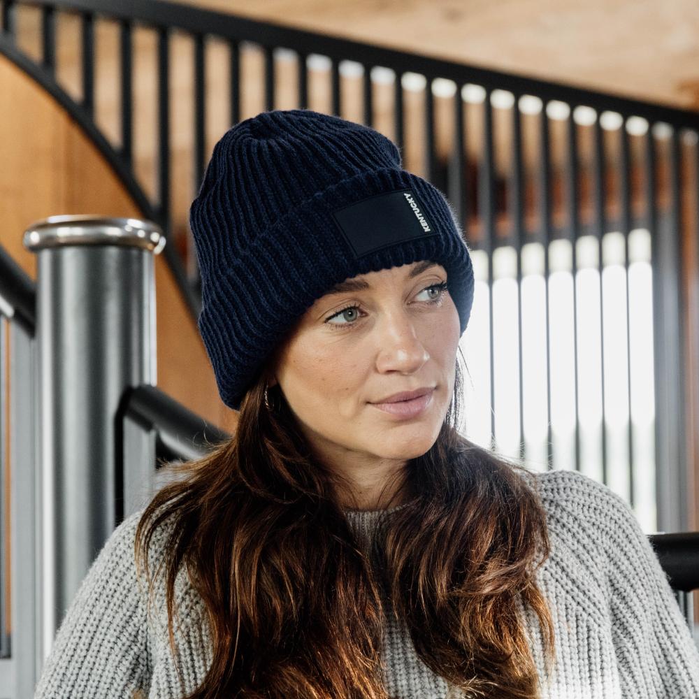 Le bonnet est fabriqué en 100 % polyester et porte le logo moderne Kentucky en caoutchouc sur le devant.