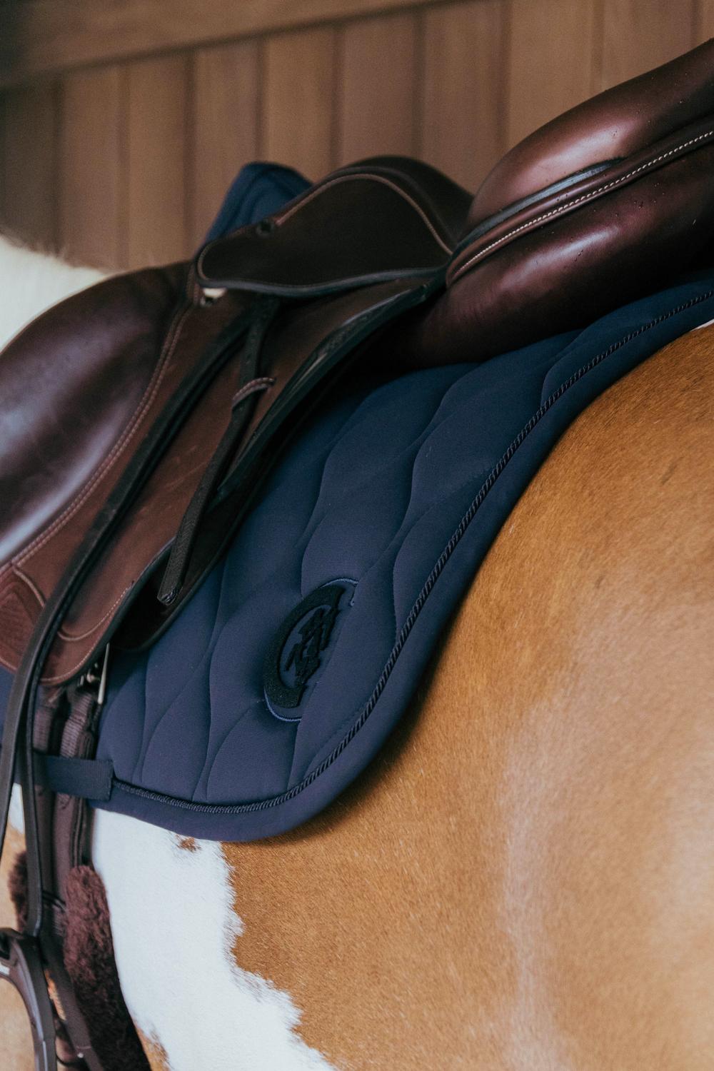 Ce Tapis de Selle est fabriqué à partir d'un mélange de tissus de haute qualité et respirants pour garantir la durabilité du produit tout en assurant le confort de ton cheval. La doublure intérieure dispose d'une technologie avancée d'évacuation d’humidité pour garder le dos du cheval au sec lors des entraînements intenses.