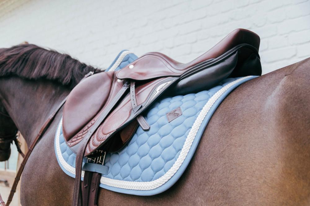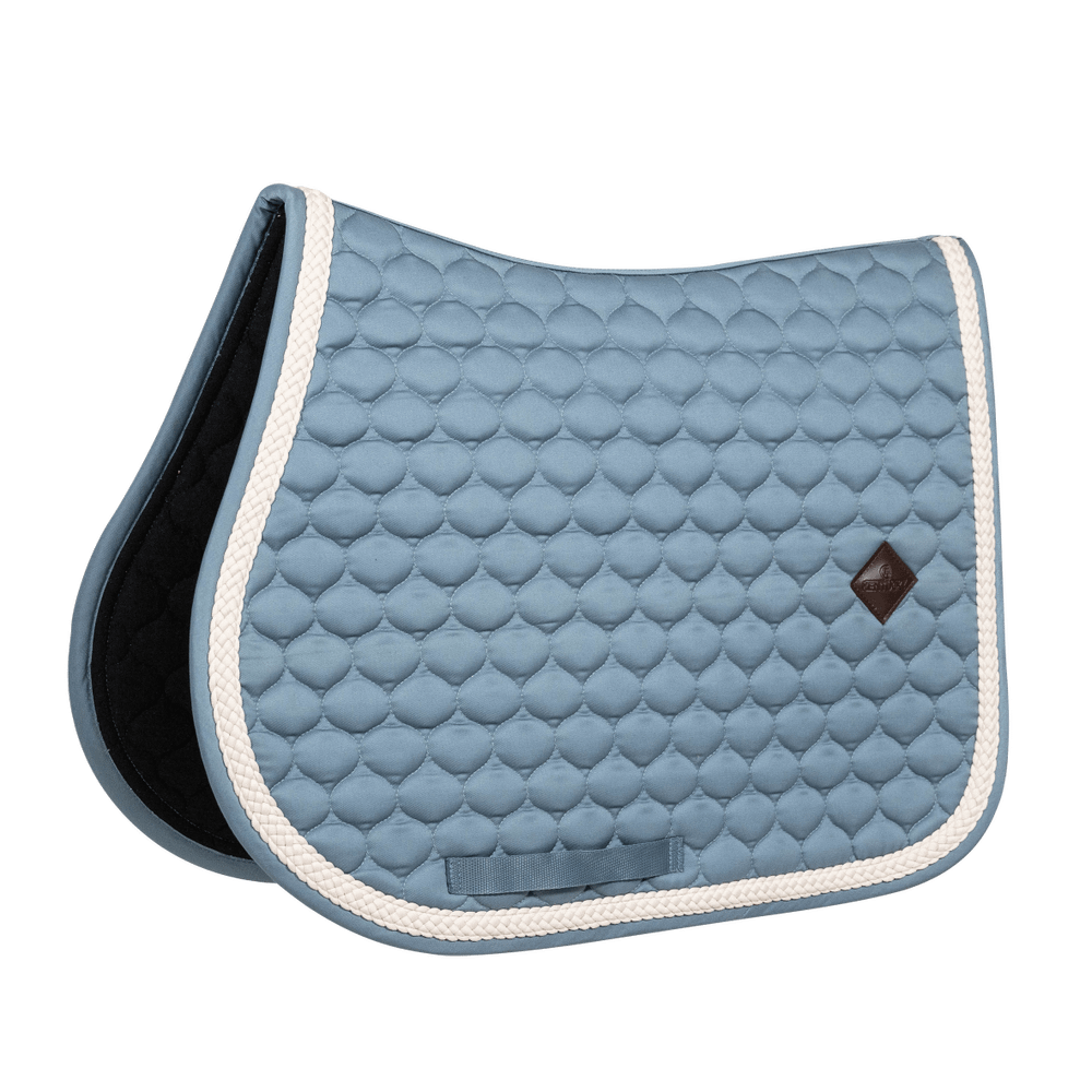 Le tapis de selle est doté d'une matelassure unique. La doublure du tapis de selle est un mélange de coton et de polyester qui absorbe facilement la transpiration et est très respirant. Le tapis de selle comporte également le logo de Kentucky avec un patch en cuir artificiel sur un côté du tapis de selle.