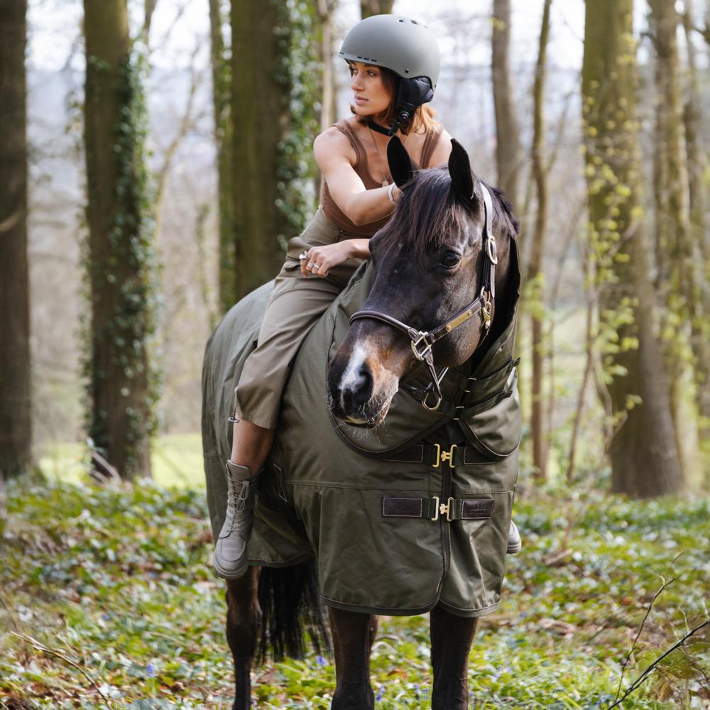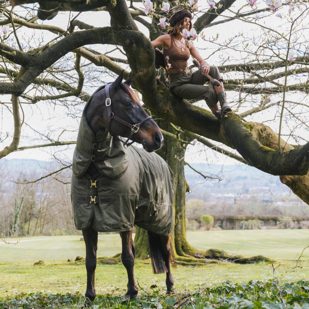 La couverture imperméable Pro a un tissu extérieur 1680D en aspect toile. Cet extérieur en polyester est très résistant, durable et repousse la saleté. Grâce au revêtement imperméable en PU (ISO 10.000mm), un cheval sec est garanti. Le garnissage de 160 g est en fibre PES, chaude et respirante grâce aux multiples couches dans lesquelles l'air peut circuler. L'intérieur de la couverture d'extérieur All Weather Waterproof Pro est doublée de notre peau de lapin artificielle. Cela évite les marques de frottement et fonctionne comme un isolant supplémentaire car il piège et retient la chaleur corporelle du cheval.