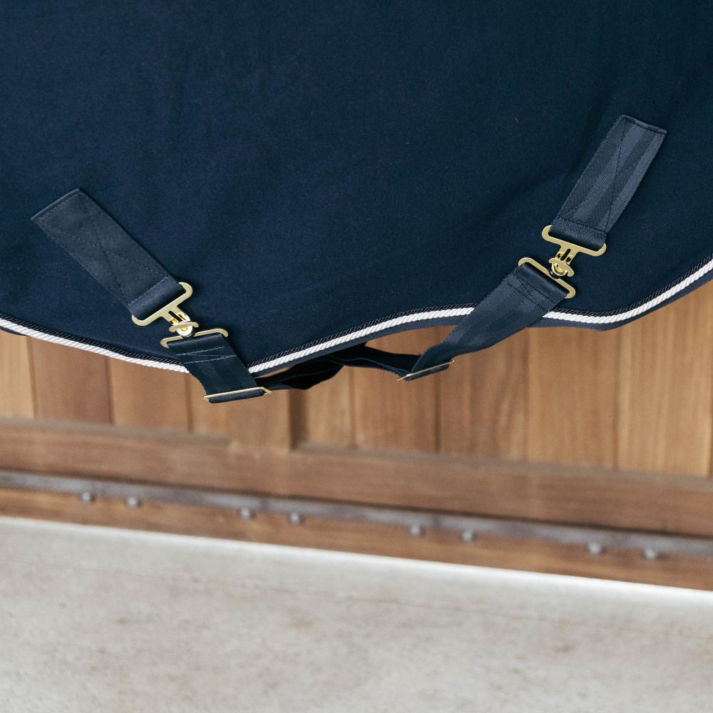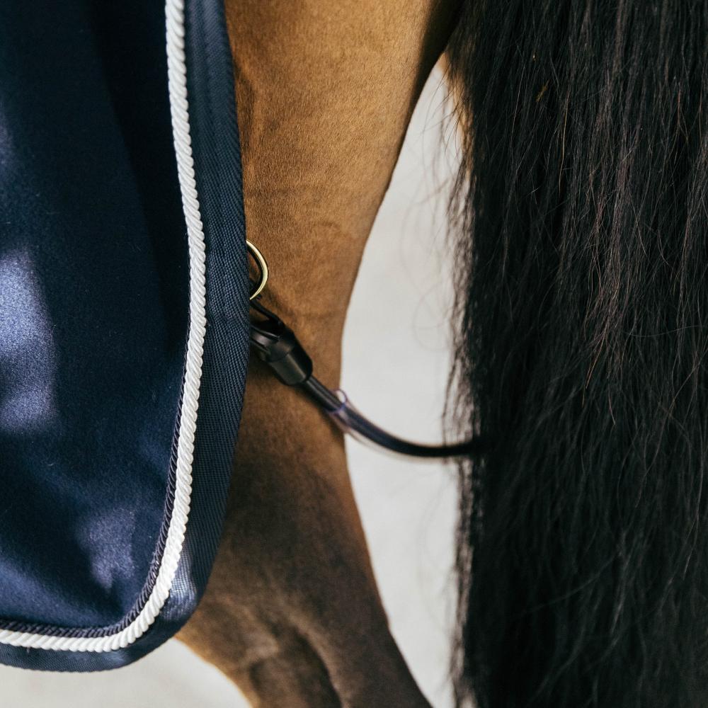 La composition unique en laine végane garantit que cette couverture est non seulement luxueuse mais aussi éthique et totalement respectueuse des animaux. Cette couverture assure une excellente régulation thermique, gardant votre cheval au chaud tout en permettant à la transpiration de s'échapper.