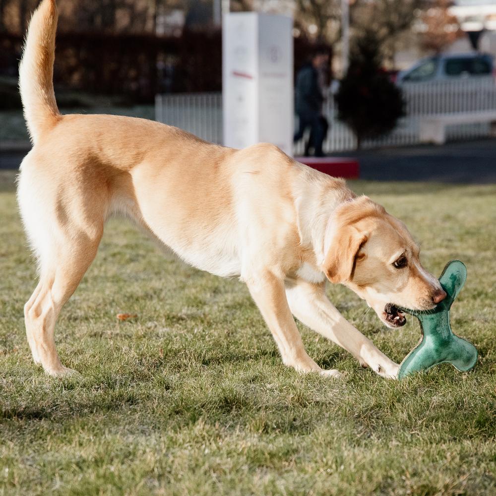 C'est l'heure de jouer ! Le jouet pour chien en forme d'os aux couleurs pastel est parfait pour les chiens qui aiment jouer à la balle ou au tir à la corde. Grâce au couinement à l'intérieur, le jouet est très divertissant. Pour éviter que le jouet ne perde sa forme, l'intérieur est rempli de jute.