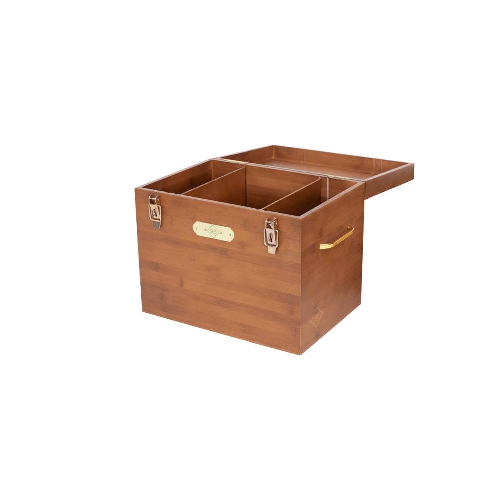 Cette boîte de pansage est idéale pour stocker vos produits et matériel de pansage en concours comme à la maison. Elle mesure 30cm de haut, 40cm de large et 28cm de profondeur. La partie supérieur s’ouvre et peut être fermée grâce à deux fermetures à cliquet dorées sur lesquels vous pouvez ajouter un cadenas si vous le souhaitez. A l’intérieur, vous trouverez un grand compartiment (25x38x26 cm) qui peut être divisé en deux ou trois compartiments grâce aux deux fines planches amovibles. Vous pouvez organiser l’intérieur de votre boîte comme vous le souhaitez ! Elle vous permet de stocker vos bouteilles de nettoyant pour cuir. La boîte est faite de bambou, ce qui la rend extrêmement résistante et très facile à nettoyer. Elle est également très légère et possède 3 poignées dorées, ce qui vous permet de l’emporter partout avec vous. Nous déconseillons d'utiliser la boîte de pansage comme tabouret.