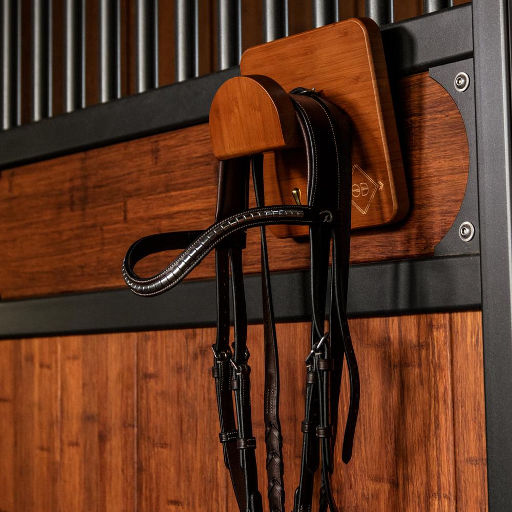 Ce porte-brides deviendra vite un incontournable de votre écurie! Il est fabriqué en bambou, ce qui le rend très résistant et facile à nettoyer. Il vous permet d'accrocher facilement votre bride ou votre licol à l'écurie de votre cheval. Le crochet doré donne à ce support un aspect très classe. Combinez style et organisation pour tous vos produits avec ce porte-brides fantaisie!