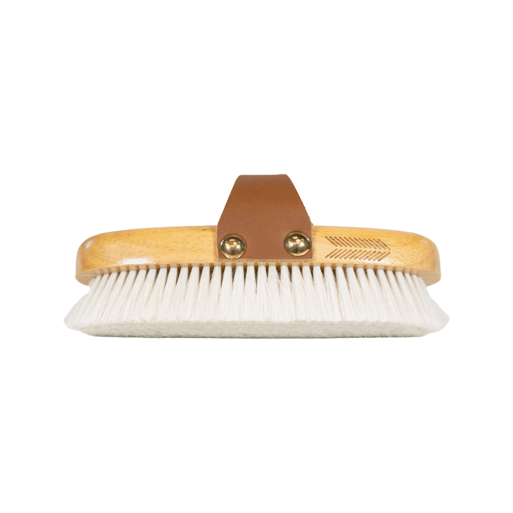 Cette brosse est fabriquée en poils de chèvre, ce qui est idéal pour les chevaux à la peau sensible, grâce à sa texture incroyablement douce. Contrairement aux poils synthétiques, les poils de chèvre offrent un toucher doux et cette douceur permet d'éviter les irritations et les écorchures.