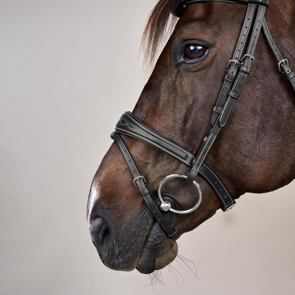 Le bridon anatomique avec muserolle combinée est immédiatement reconnaissable par son élégance intemporelle.De loin comme de près, sa muserolle et son frontal subtilement élargis offrent une allure distinctive et soignée. Conçu pour le confort absolu du cheval, sa forme anatomique réduit la pression sur les zones sensibles, garantissant un ajustement optimal et une stabilité maximale lors de l'entraînement et des compétitions.
