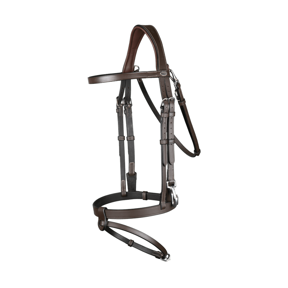 Pensé pour les cavaliers à la recherche d’efficacité et de polyvalence, ce bridon en cuir plat est fabriqué en cuir de buffle robuste, offrant une sensation à la fois solide et souple, capable de suivre ton rythme quotidien. Les mousquetons sur les montants et la sous-gorge te permettent de changer de mors ou d’enlever la bride en un clin d’œil—pratique quand tu travailles plusieurs chevaux ou passes d’une discipline à l’autre.