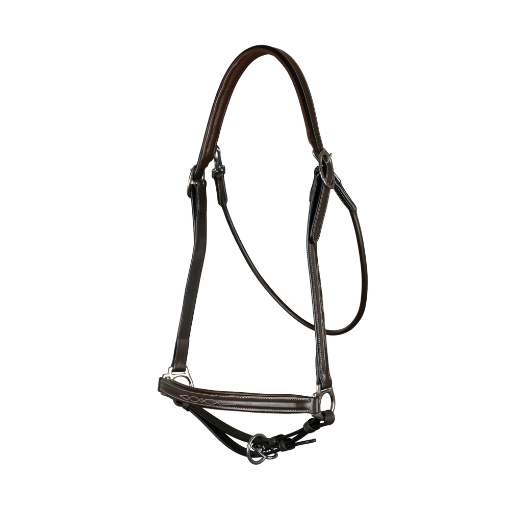 Grooming Head Collar Headpiece adjustable on both sides Specially designed for grooming the head Decorative stitching on the cheekpieces and noseband Throatlatch fastened by snap hooks Noseband adjustable under the jaw Detachable throatlatch