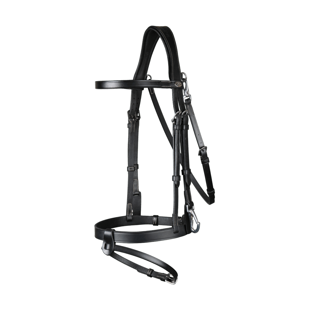 Pensé pour les cavaliers à la recherche d’efficacité et de polyvalence, ce bridon en cuir plat est fabriqué en cuir de buffle robuste, offrant une sensation à la fois solide et souple, capable de suivre ton rythme quotidien. Les mousquetons sur les montants et la sous-gorge te permettent de changer de mors ou d’enlever la bride en un clin d’œil—pratique quand tu travailles plusieurs chevaux ou passes d’une discipline à l’autre.