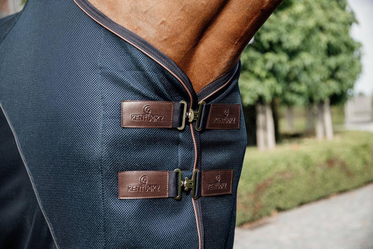 The benefit of 3D spacer in rugs is that hairs won’t stick into the lining. After washing or a workout, the rugs both gradually cool down your horse, thanks to the airflow that can circulate. Besides, the combination of the cushioning effect of the 3D spacer and the anatomic shape makes the rugs very comfortable for your horse to wear.