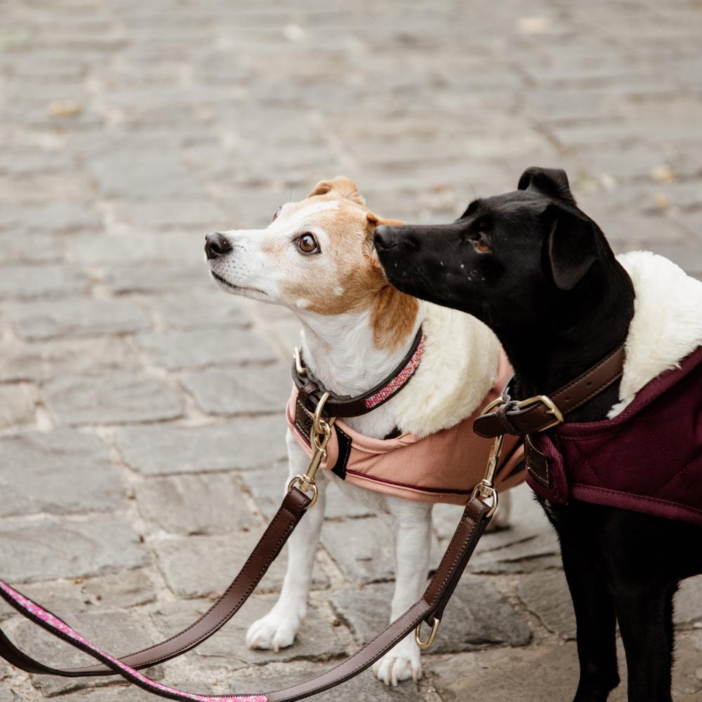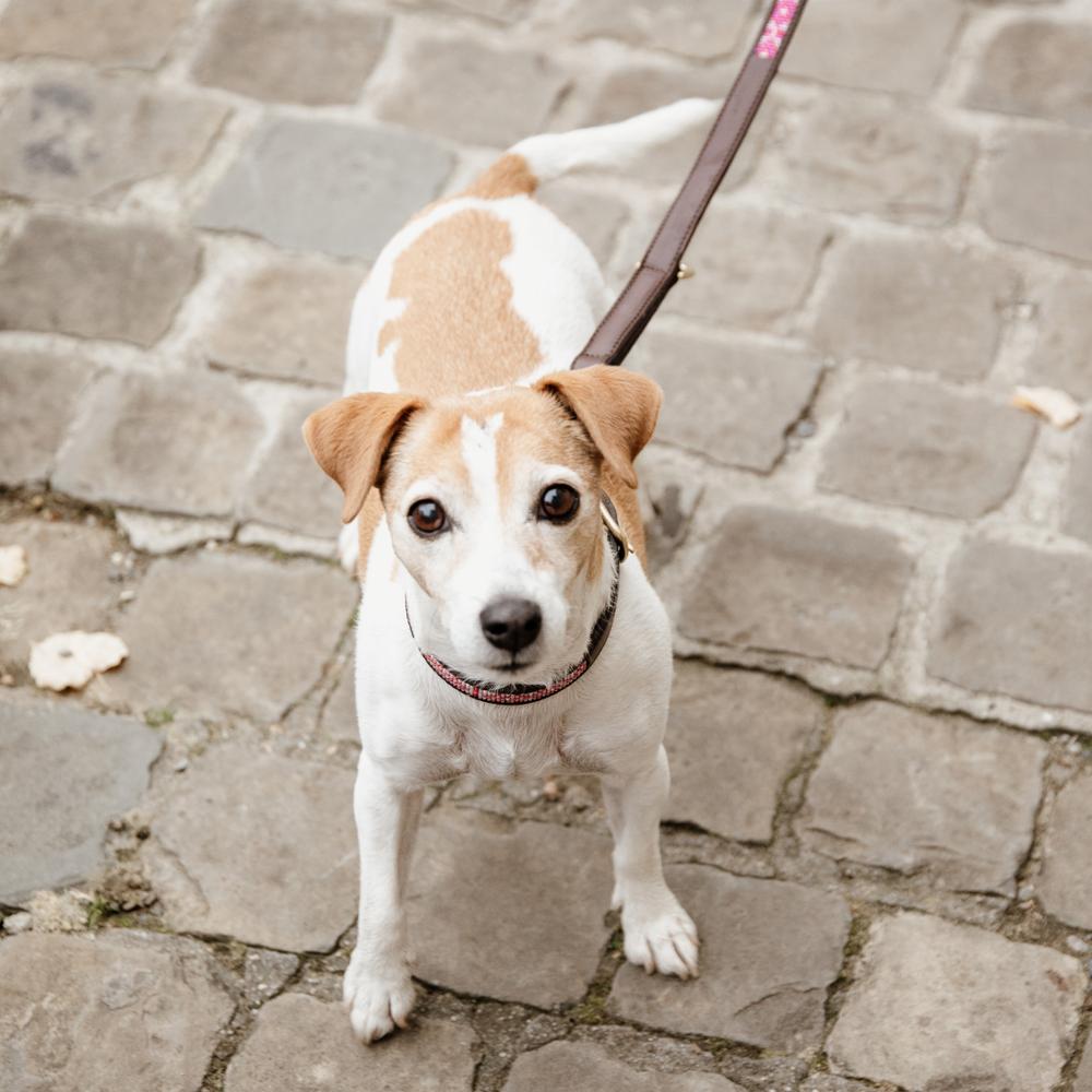 De leiband is 2 meter lang en beschikt over drie ringen om bij te stellen naar drie verschillende lengtes. Deze leiband kan niet in de wasmachine. Wij adviseren om hem te reinigen met een eenvoudige vochtige doek.
