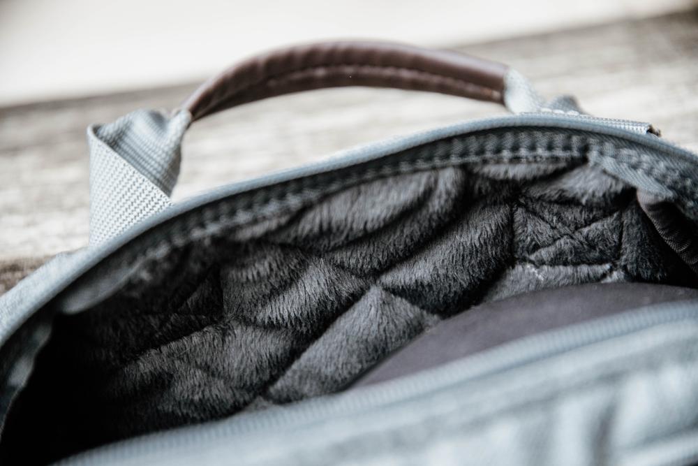De buitenkant van de captas is gemaakt van de chique Kentucky stof. De binnenkant van de tas is gevoerd met artificiële konijnenvacht wat je cap beschermt tegen krassen. Naast bescherming heeft de artificiële konijnenvacht ook een schokabsorberende functie. De handvaten van de tas zijn afgewerkt met artificieel leder, voor een comfortabeler transport.
