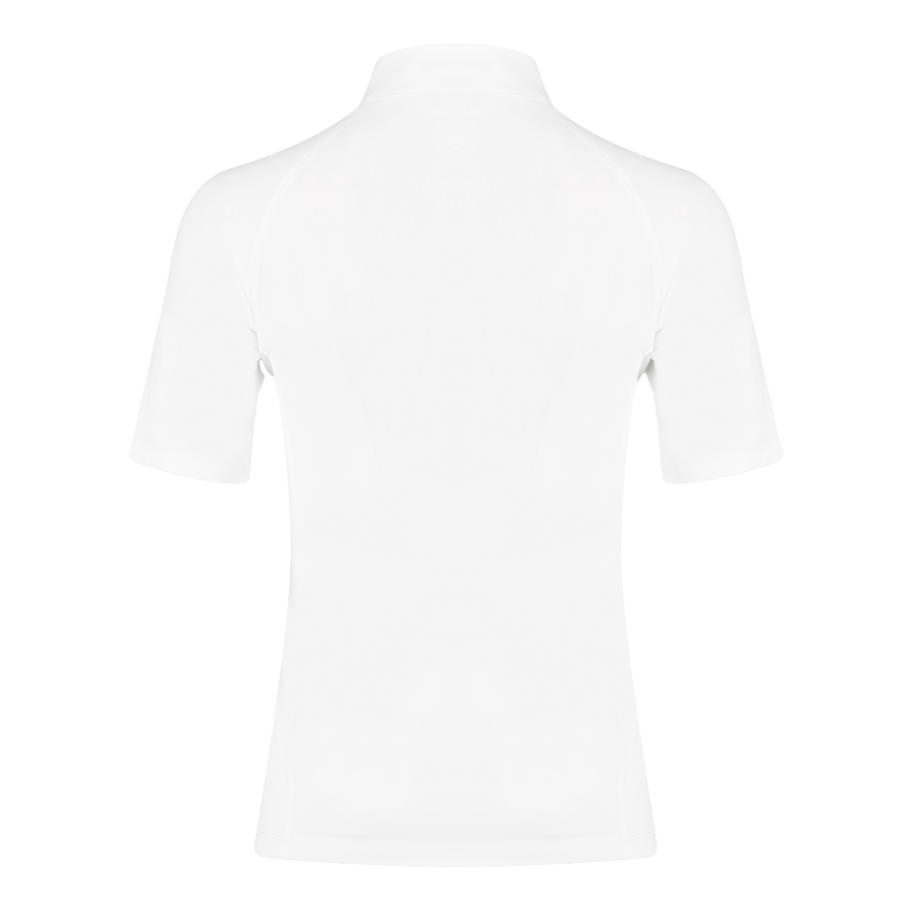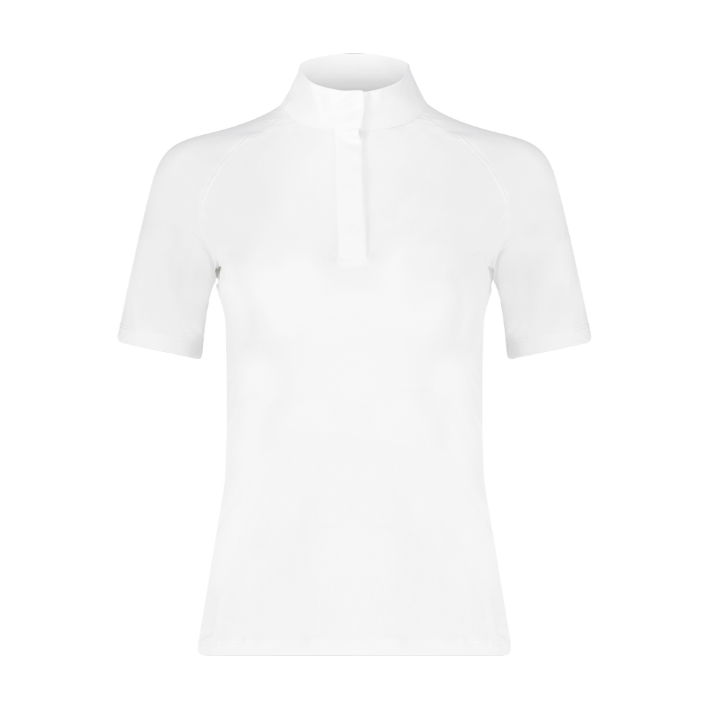 This show shirt combines sophisticated design with exceptional functionality. The lightweight, stretchable fabric ensures you stay comfortable throughout your performance, while the discreet collar and cuff design adds a layer of subtle elegance. Perfect for riders who appreciate both style and practicality. Thanks to its short sleeves, this shirt is perfectly adapted for summer and warm conditions.