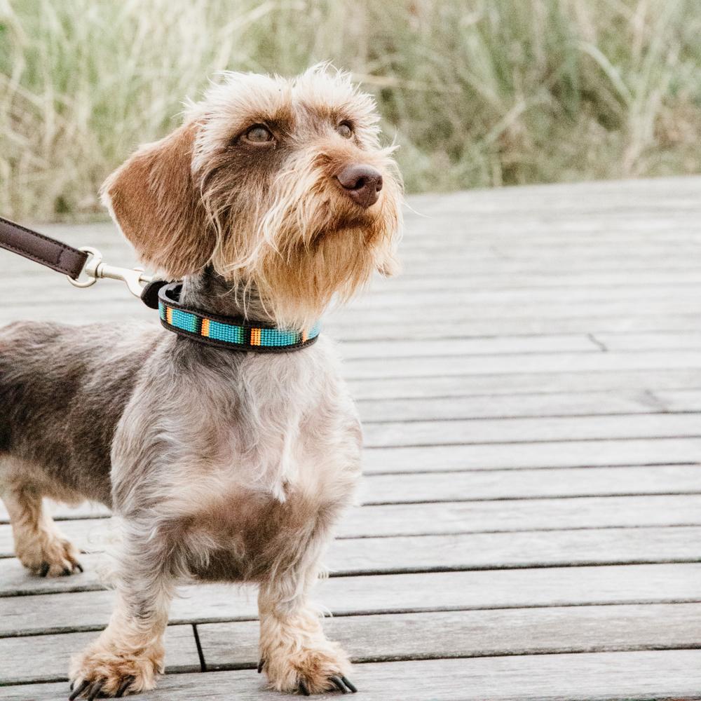 Our Pearls handmade dog collars brings a touch of color for a refined look. Are you also a horse lover? Our Pearls Halter matches perfectly with this dog collar.