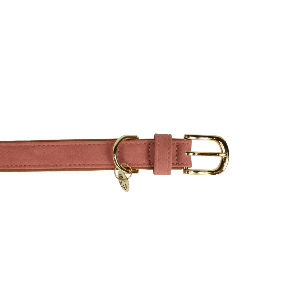 The vegan leather is extremely soft and very supple. Thanks to its softness, the material is perfect for dogs who are sensitive to chaffing. The lightweight vegan leather is very comfortable to wear. The hardware on the dog collar is a gold-plated brass.