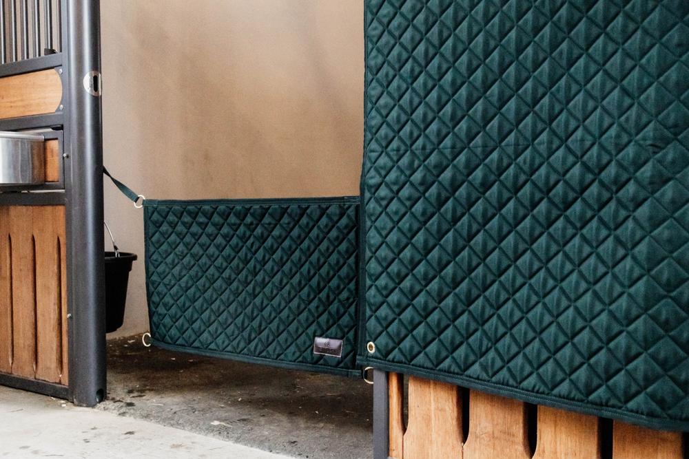 The Kentucky Stable Guard enables your horse to put his head outside of the stall to relax. This Stable Guard has two reinforced gold colored rings in the upper corners with a nylon strap with a snap hook to attach to the stable. There are two more reinforced rings in the bottom corners to attach the Stable Guard. The diamond quilting pattern and the artificial leather Kentucky logo create a fancy look. This Stable Guard is a perfect match to our Head Protector and Stable Curtain. The Stable Guard is made out of 600D high tenacity polyester and is machine washable at 30°, no dryer.