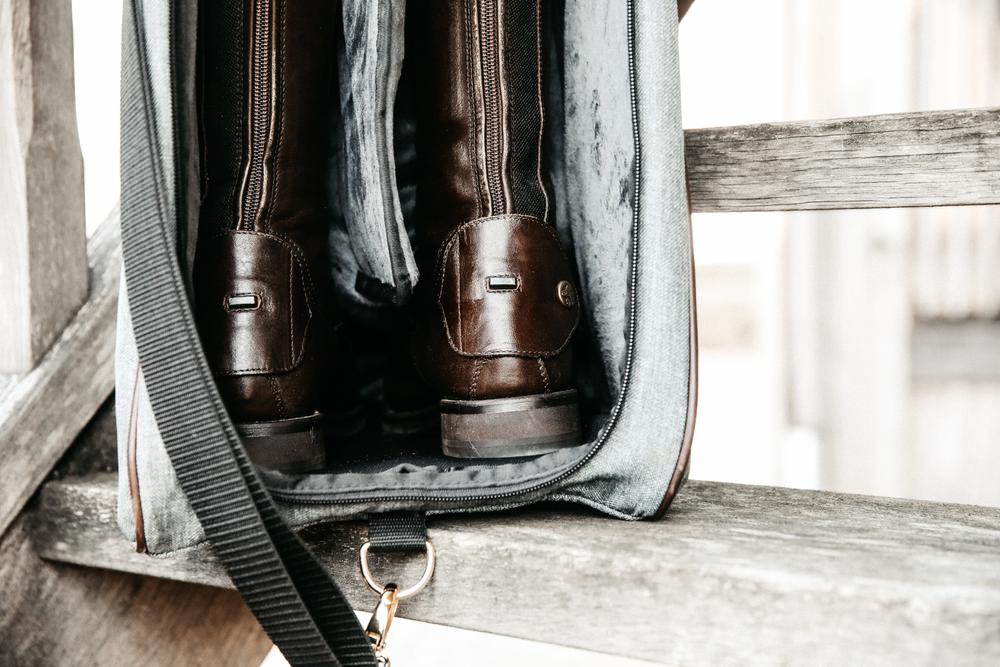 The Kentucky Horsewear Boots Bag offers protection to your boots during transportation, at shows or at home. The Boots Bag has artificial rabbit skin on the inside to avoid scratches on the leather. The name tag on the front can be turned over and personalized. The Boots Bag can be easily carried thanks to the handle on the top or to the long nylon strap, which can be adjusted in length. The Boots Bag has the same diamond quilting and artificial leather piping as our Bridle Bag, stable set (curtain, guard, head protector) and our rugs! Therefore, this Boots Bag tops of the Kentucky show look. The Boots Bag is machine washable at 30°, no dryer.